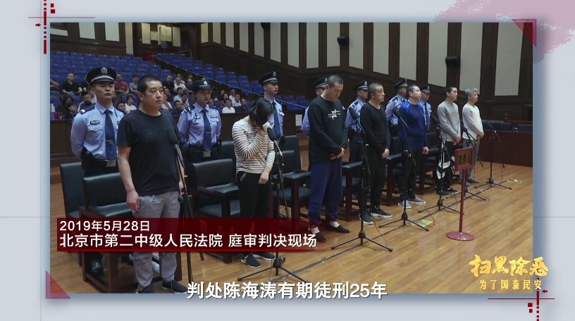 2019年5月28日,北京市第二中级人民法院对陈海涛黑社会性质组织犯罪作出一审判决,以组织、领导黑社会性质组织罪等14项罪名判处陈海涛有期徒刑25年,剥夺政治权利3年,并处没收个人全部财产。