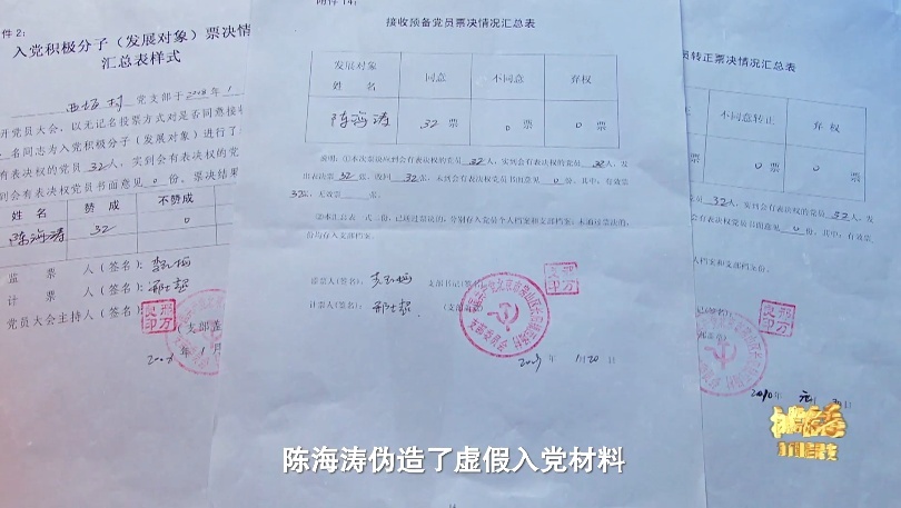 为了彻底把村委会变成自己的“一言堂”,陈海涛开始违规发展自己的亲属和团伙成员入党,谁反对就报复谁。