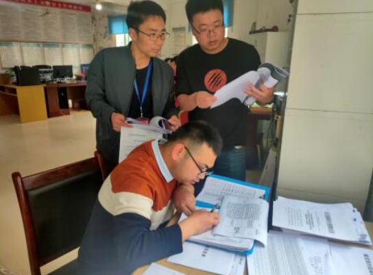 督查组成员正在蟠龙镇检查森林防火责任落实情况