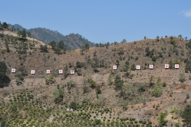 4月2日上午,站在攀枝花市盐边县桐子林镇金河村万亩芒果基地观景台向西望去,对面山上一片区域被一串由红色三角小旗连成的绳索“圈”出来,“规范经果林 建好隔离带”几个大字十分醒目。