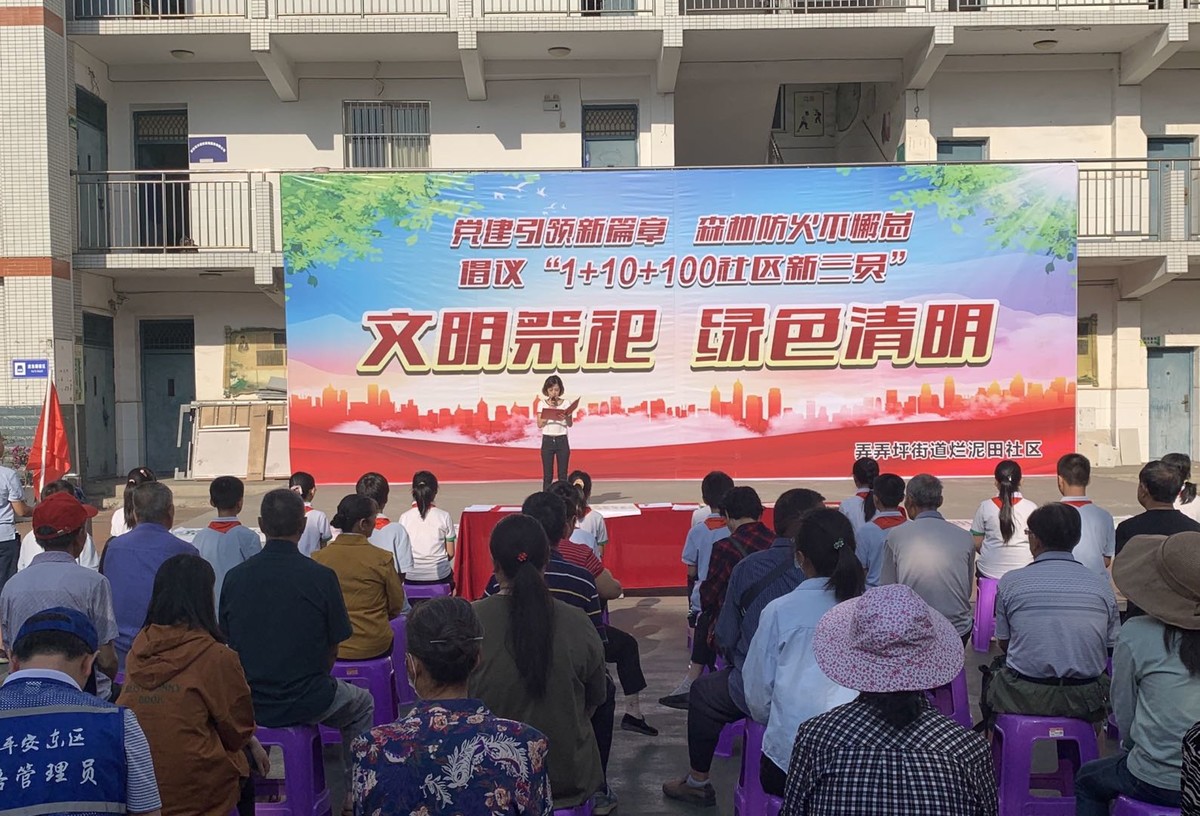 4月2日,在清明节来临之际,攀枝花市东区弄弄坪街道烂泥田社区广场上,一场主题为“党建引领新篇章、森林防火不懈怠暨倡议”的活动吸引了不少辖区居民参与。活动以纪念中国共产党成立100周年为契机,充分调动社区党建力量,在辖区内倡导文明健康的祭祀新风尚。
