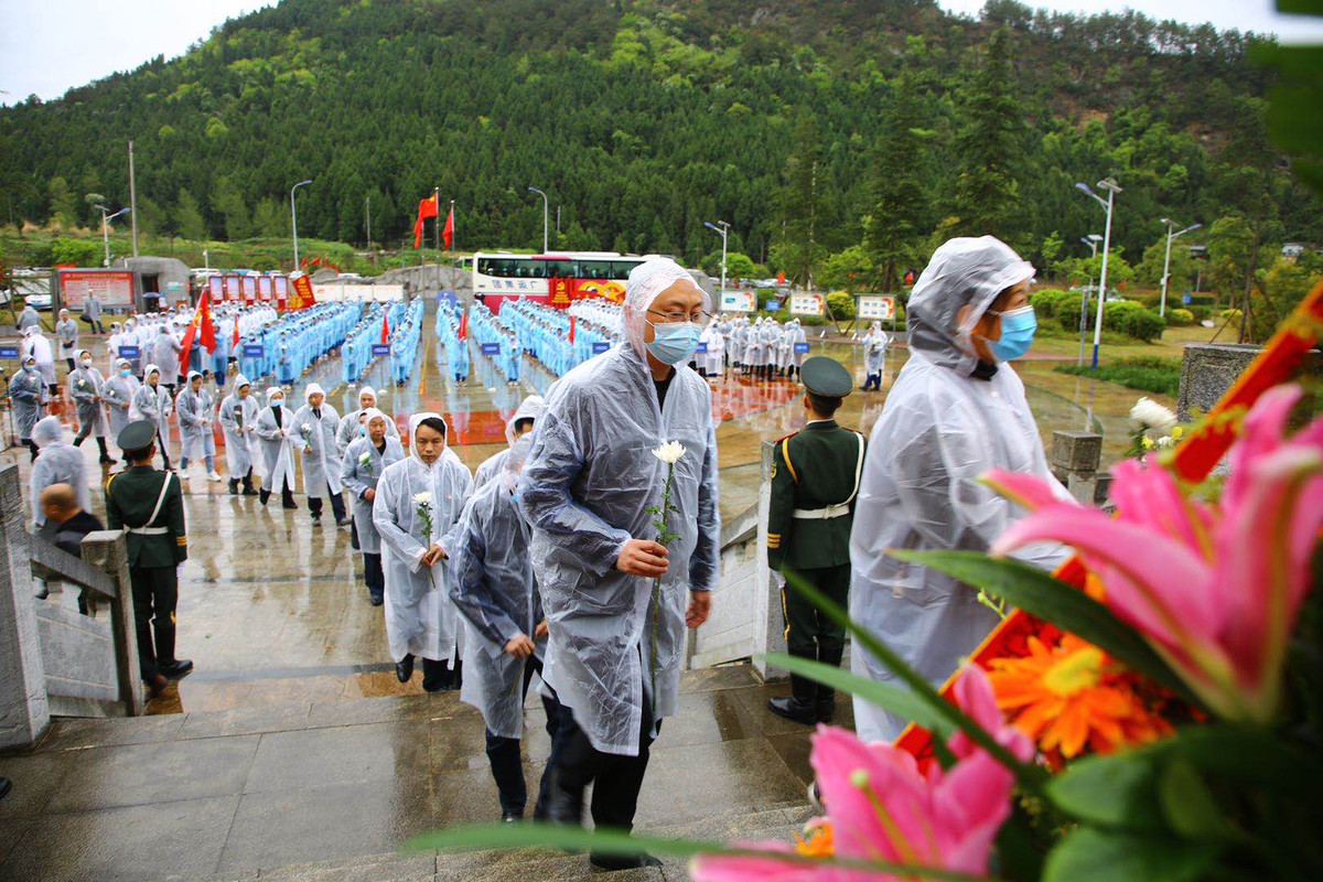 “学习党的历史、缅怀革命先烈、传承红色基因。” 4月2日,天下着小雨,广元市、利州区2021年清明祭扫活动在烈士陵园举行。本次活动由广元市委宣传部、市退役军人事务局、团市委、利州区少工委、利州区教育局、利州区退役军人事务局联合举行,广元市各级党员干部、烈士遗属、老战士代表、驻广部队代表以及学生团队共500余人参加了此次向烈士敬献花篮活动。