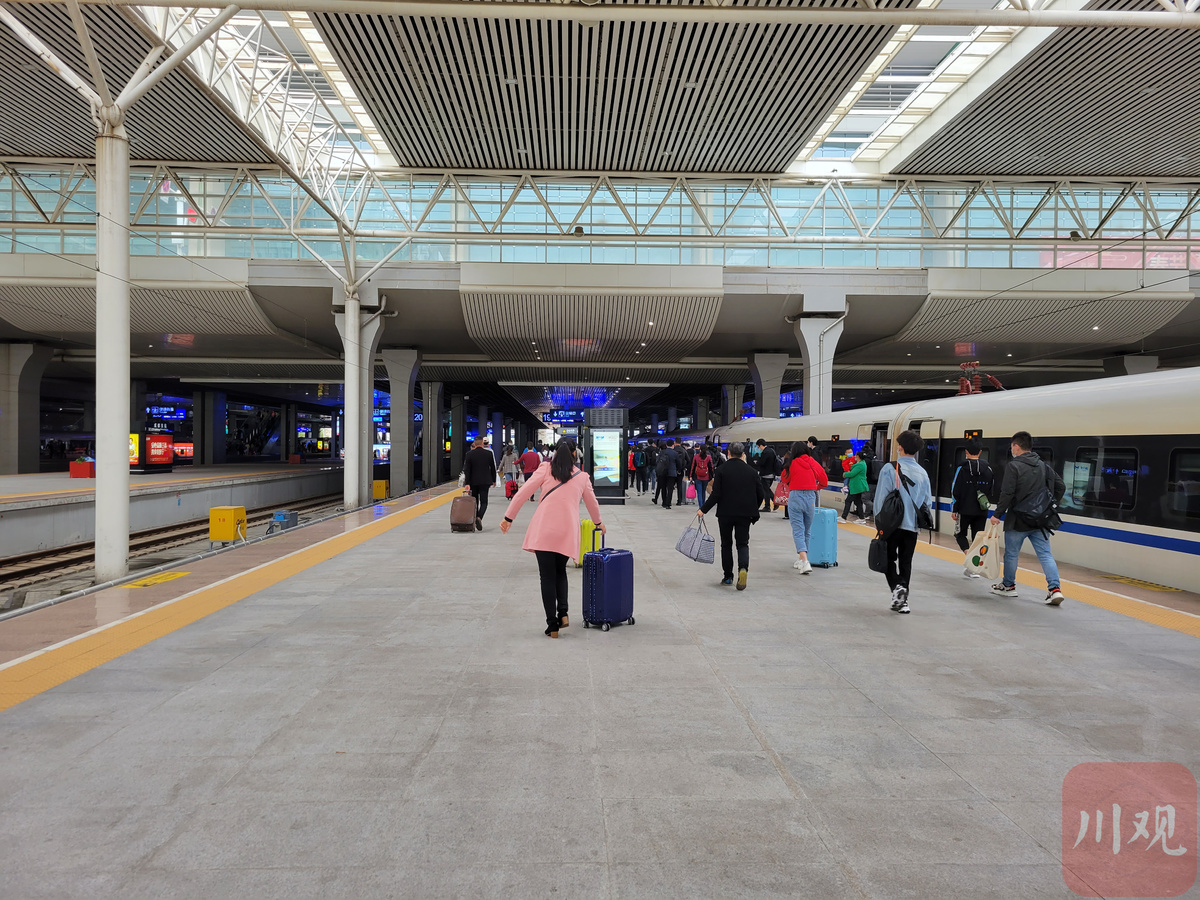 数据显示,截止当日18时,管内共计发送旅客28.6万人次,同比2019年增加0.1万,增长0.5%。其中成都站2.8万人次,成都东站18.7万人次,成灌线3.8万人次,成贵高铁(成都南站、双流机场站)1.4万人次,成渝城际(简阳南站、资阳北站)0.7万人次,成都西站1.2万人次。
