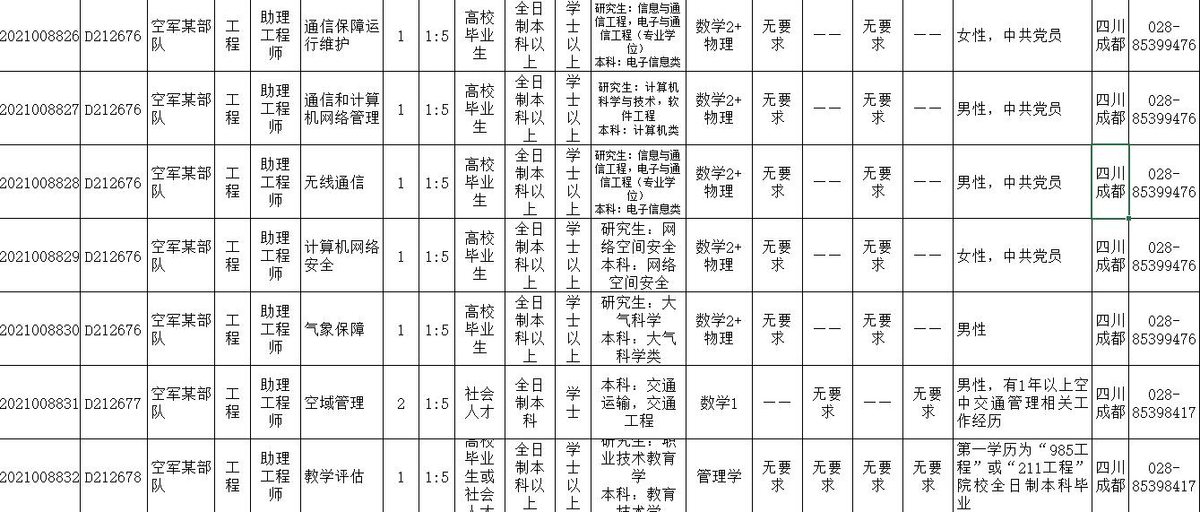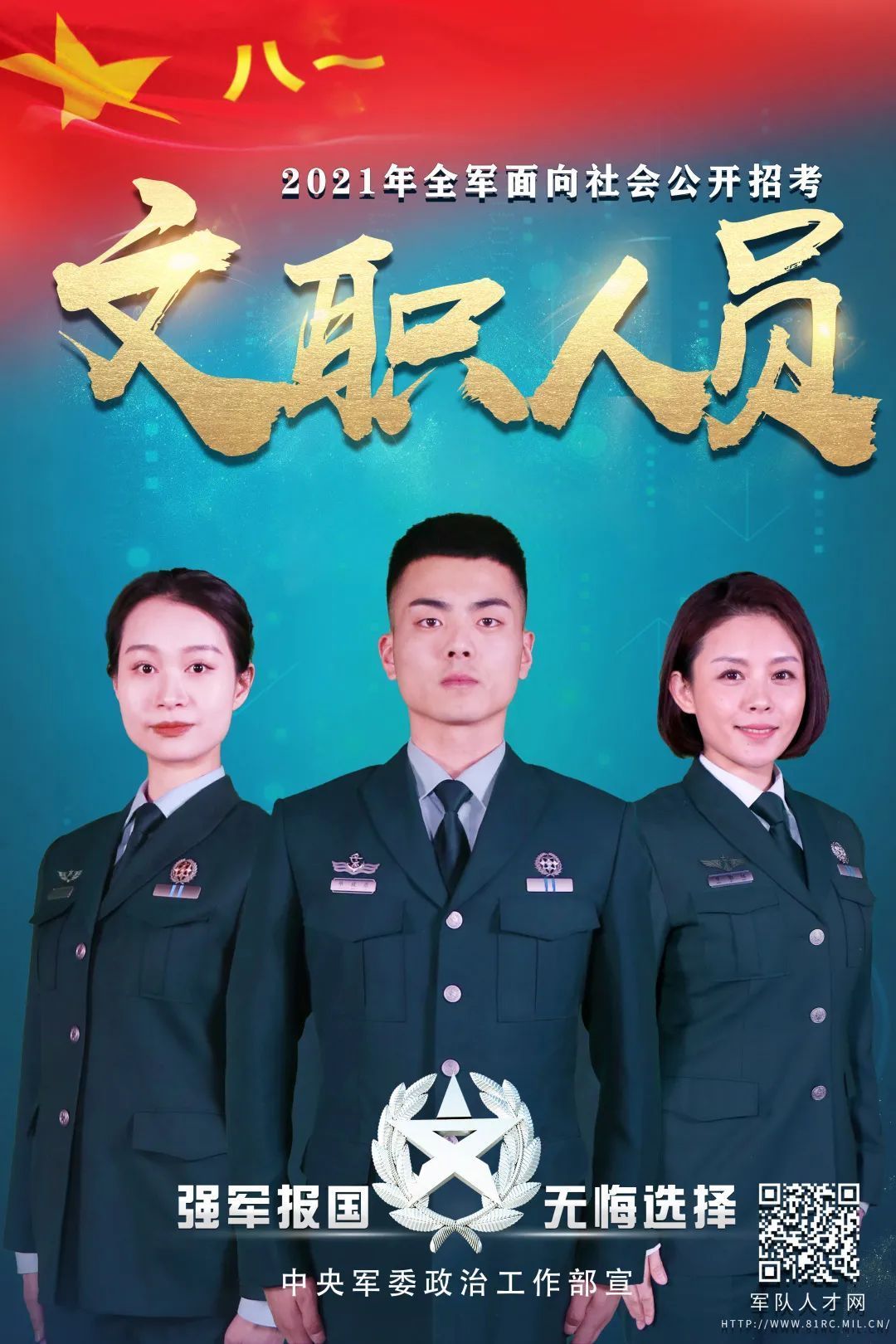 2021年全军面向社会公开招考文职人员。