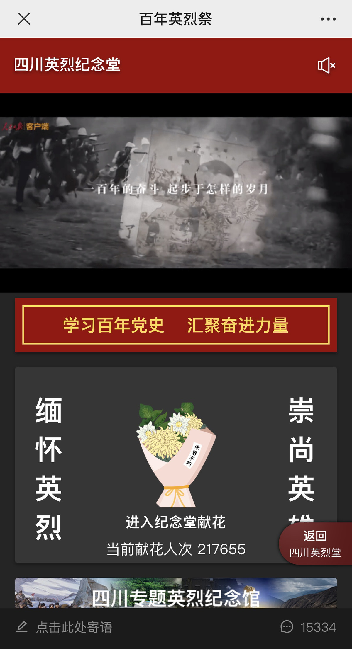 清明忆先烈,鲜花寄哀思。为悼念革命烈士,缅怀先烈丰功伟绩,清明节前后,结合党史学习教育,四川省退役军人事务系统组织开展“清明祭英烈”活动,并依托刚刚改版上线的四川英烈纪念堂开展“百年英烈祭·守护2021”主题网上祭扫活动。截至4月5日19时,已有超过21万人次网友登录献花,近两万名网友留言悼念。