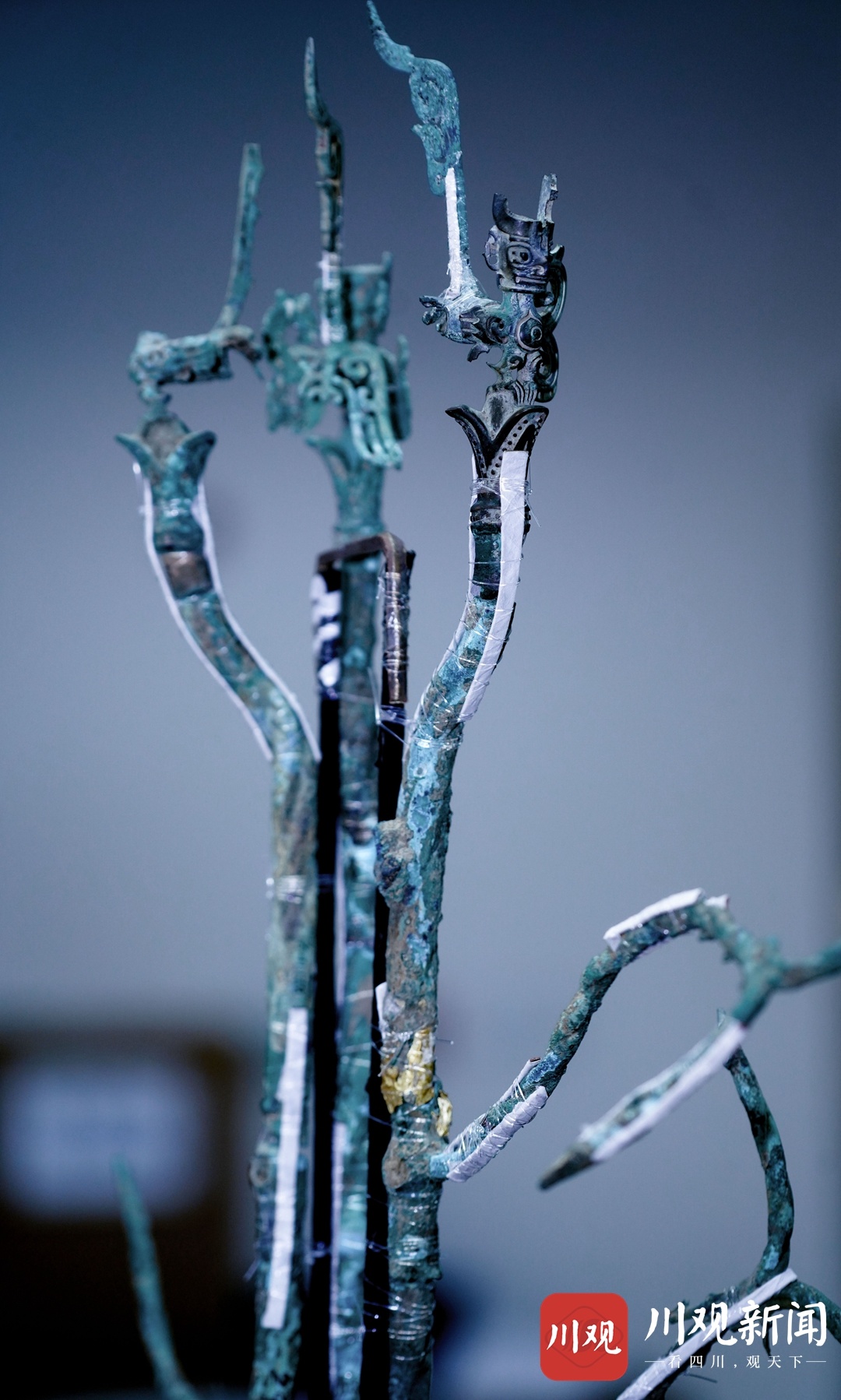 据介绍,这株神树在完全修复完成后,将在博物馆公开展出,与三星堆镇馆之宝——1号青铜神树一起,共同展示三星堆人神树崇拜的宗教信仰以及杰出的艺术创造力。