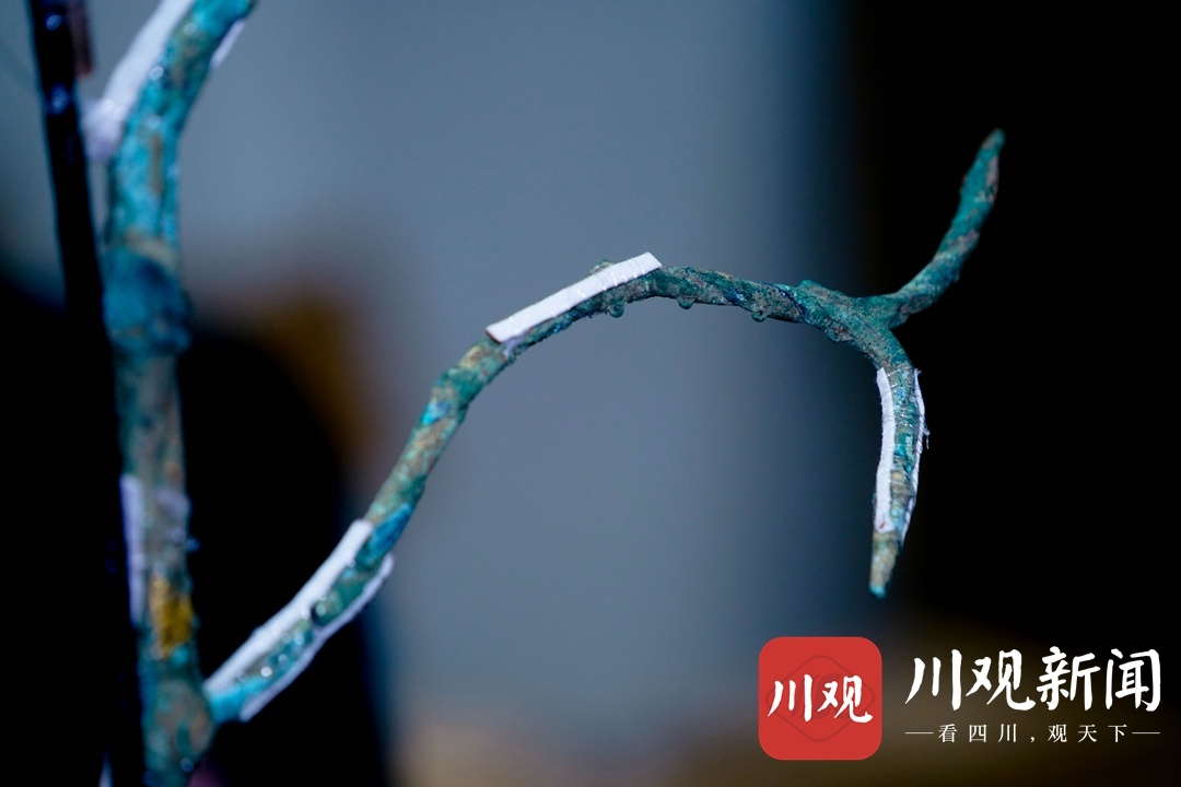 在神树拼接过程中,郭汉中不仅让两件独立的人首鸟身像重新飞上了树顶,还为它们找到了散落多年的精美尾翎,成为修复过程中的一大惊喜。