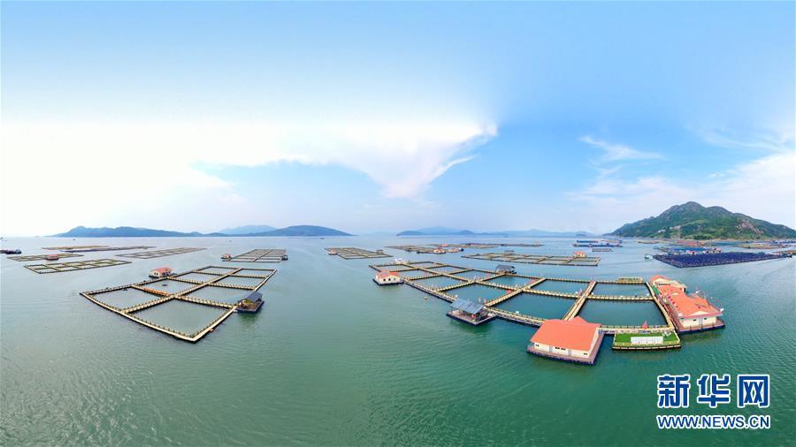 这是2020年7月15日拍摄的福建省宁德市三都澳大黄鱼深水塑胶渔排养殖区(无人机照片)。 新华社记者 姜克红 摄