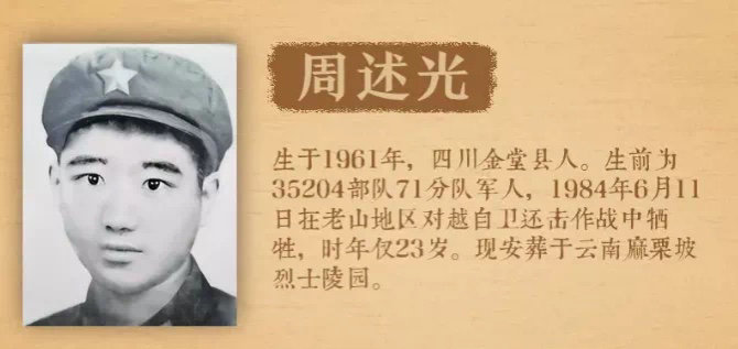 周述兵有两个儿子,大伯周述光烈士是他们心中的英雄。“老大今年23岁了,一直想像他大伯那样,去当兵,保家卫国。”周述兵说,现在,得知大伯安葬在云南,孩子们都想去拜祭一下。“三哥长眠异乡,去云南拜祭他是我们一大家的心愿。”周述兵说,虽然父母已经去世了,但等疫情好转后,他们姐弟、娃娃们都会去云南看看三哥,和他好好说说话。