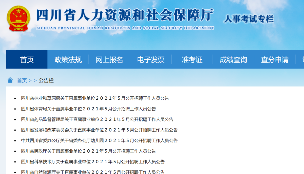 四川省人力资源和社会保障厅官网“人事考试”专栏
