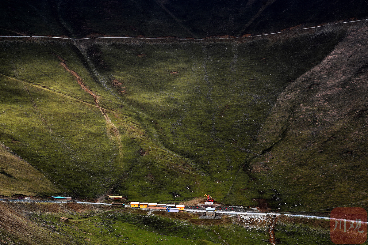 夹金山五道拐海拔3350米,距离夹金山垭口12公里的车程,海拔高差664米,距离红军小道起点25公里车程。