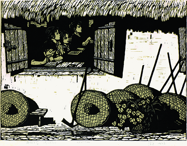 《乡村小学》 徐匡 套色木刻 43X57 CM 1964年