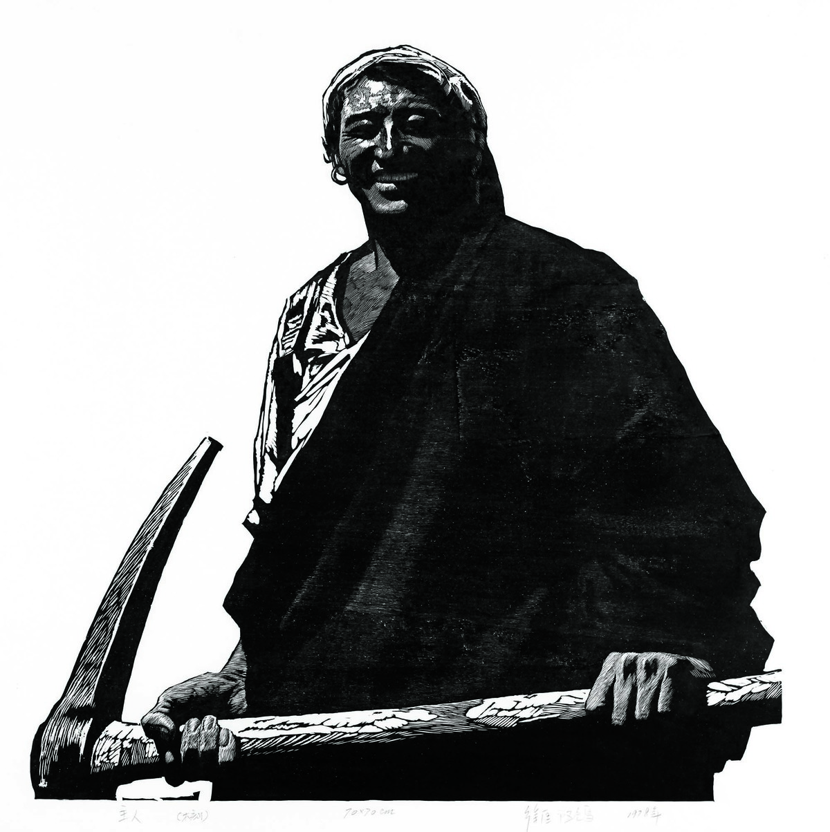 《主人》 徐匡、阿鸽合作 黑白木刻 70X70CM 1978年