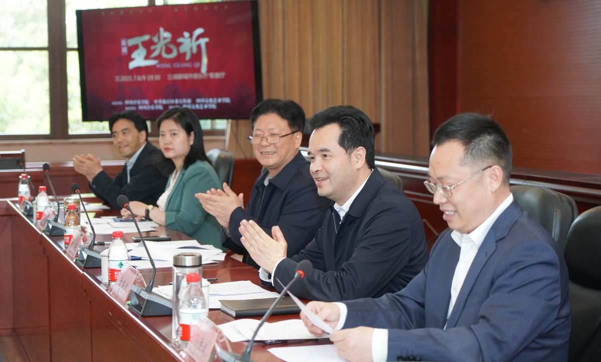 时值建党100周年,四川音乐学院以实际行动打造歌剧《王光祈》,积极与温江区、四川文化艺术学院深入合作,高标准打造《王光祈》歌剧,开启专业院校与川内一线创作团队合作的探索。该剧由川音党委副书记、院长、文学博士、博士生导师刘立云教授和川音戏剧学院副院长左芝兰教授编剧,川音党委常委、副院长孙洪斌教授作曲,四川文化艺术学院院长龚珍旭任文学统筹,“荷花奖”《努力餐》编剧、国家二级编剧潘乃奇任文学统筹、执行制作人,著名青年导演伍埕执导,川音艺术处特聘创作员、西华大学音乐系主任向琛子副教授、川音作曲系副主任杨华教授、川音作曲系主任助理敖翔副教授、川音作曲系副教授刘奇琦配器,《努力餐》编导肖旭担任舞蹈编导,川音民族声乐系、歌剧合唱系主任谭学胜教授担任声乐指导,郑洁教授、孔磊任艺术指导。值得一提的是,中央戏剧学院舞台美术系教授、中宣部“四个一批”人才、美国耶鲁大学高级访问学者边文彤助力该剧,担任歌剧《王光祈》舞美设计、服装设计。