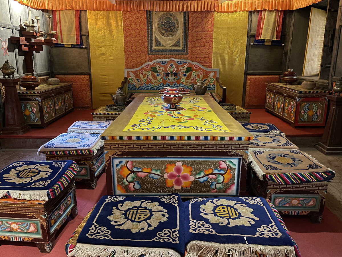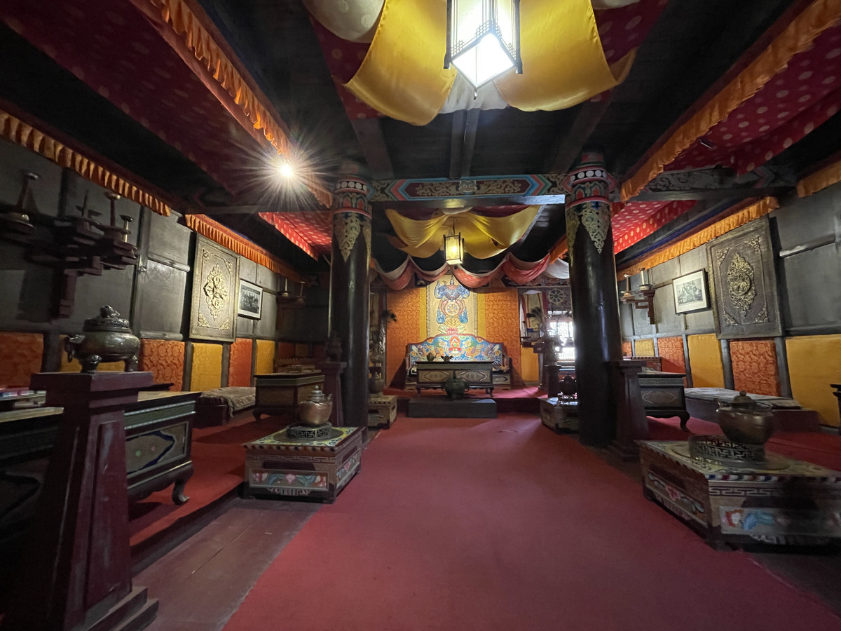 在土司生活的年代,除了居住与办公的使用功能外,官寨还体现着农奴制下森严的等级制度。即便土司制度已经废除70余年,但当记者站在官寨天井时,俯仰之间,依然可以想见那个农奴、宾客、土司、僧侣聚居一院又秩序井然的旧日图景。严木初崩告诉记者,过去,官寨的五个楼层之间的秩序不可逾越,一楼住土司家的农奴,二楼是土司的客房,三楼是土司日常办公和居住的地方,四楼和五楼则均是宗教用途,不仅供奉着藏传佛教里的佛像,还居住着土司家的家僧。