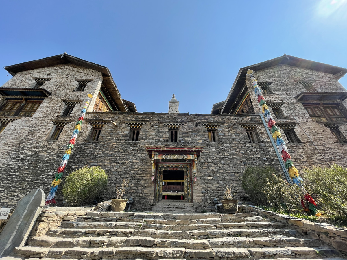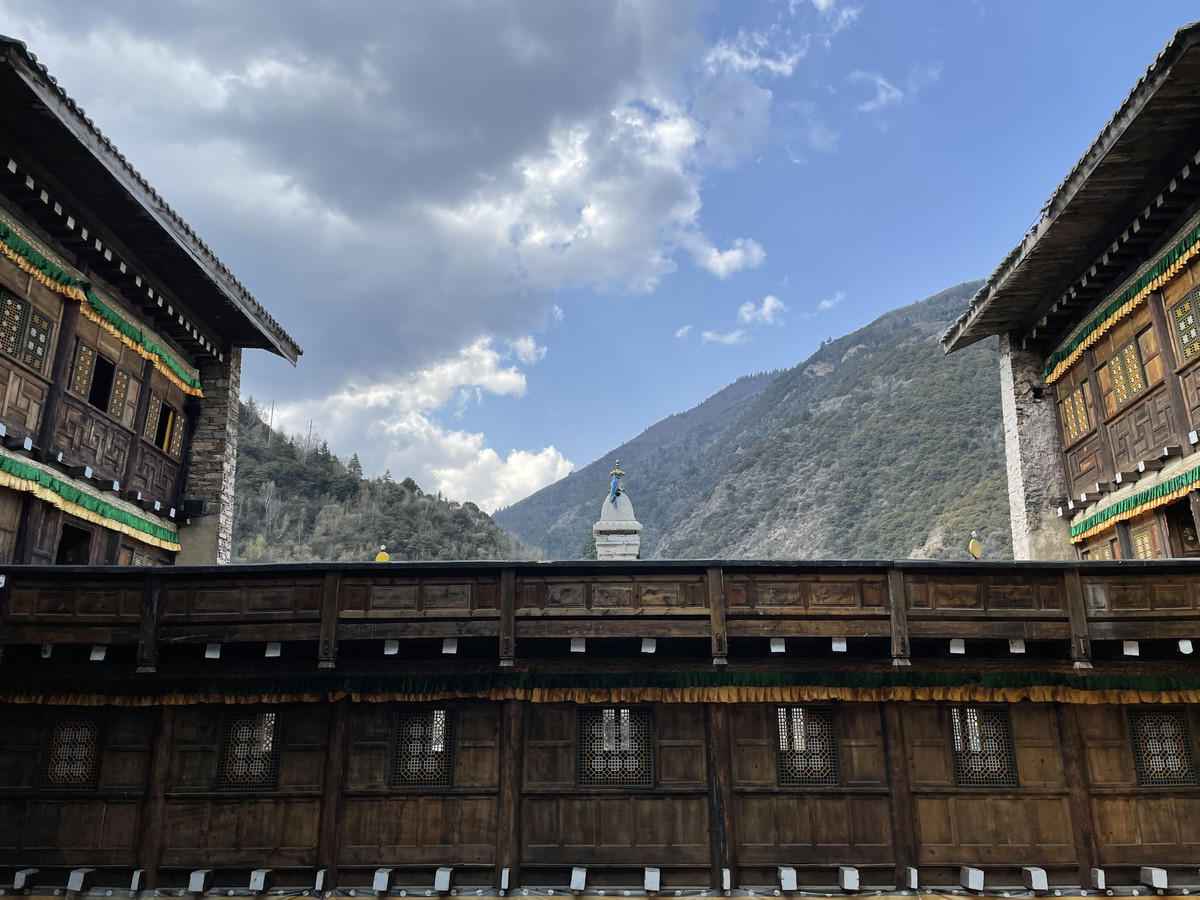 2021年3月底,伴着春日的暖阳,记者来到位于阿坝州马尔康市卓克基镇西索村的卓克基土司官寨。在一片崇山峻岭之中,官寨前临纳足沟,后枕梭磨河,由四组碉楼组合为封闭式的四合院,体现出鲜明的藏族石碉古建筑风格。依山傍水的地势、雄奇挺拔的建筑使它天然地透出威严与自在。