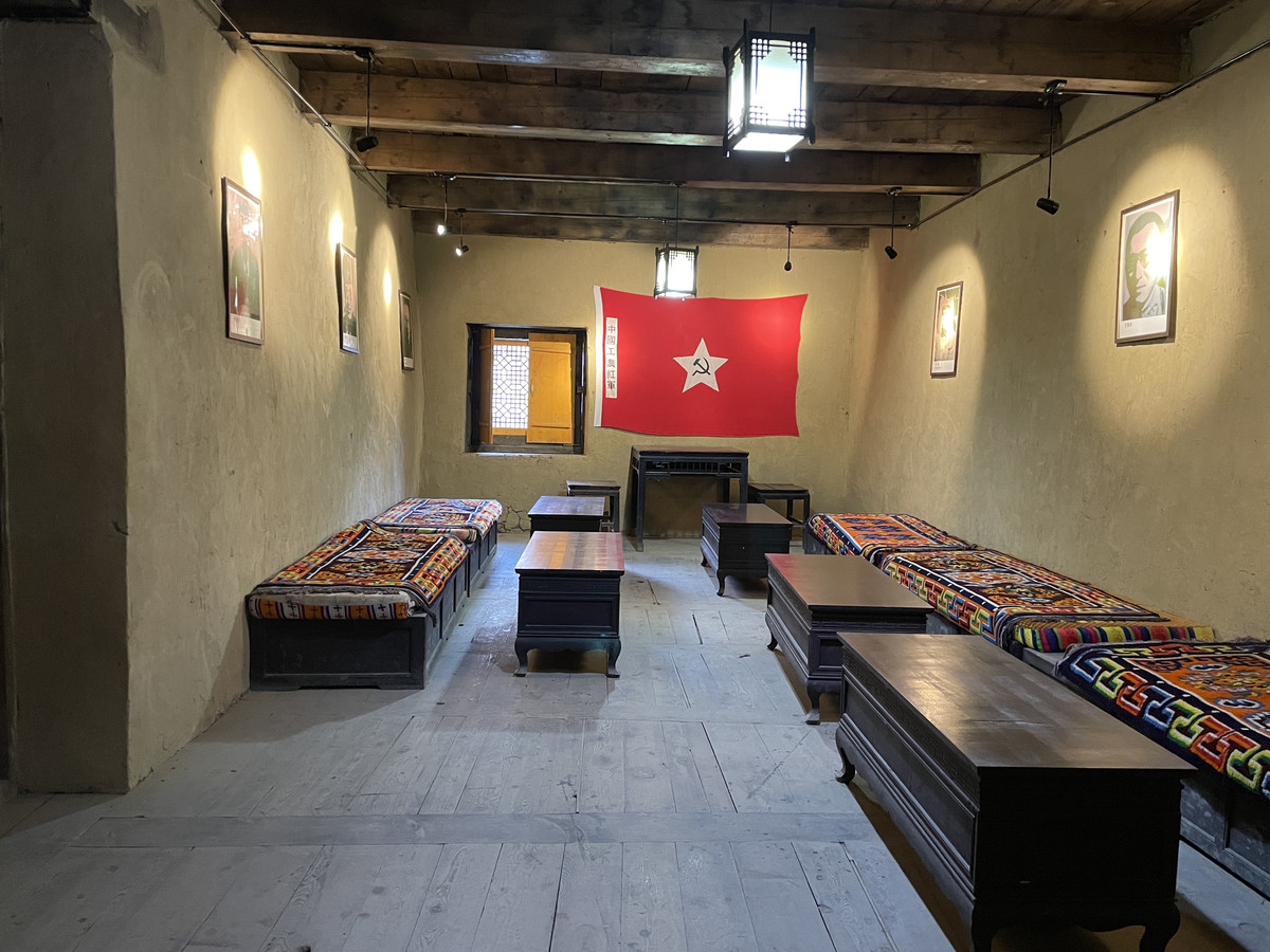 在官寨二楼,有一间被称为“蜀锦楼”的房间,是红军与官寨这段相遇的见证。蜀锦楼藏有土司收藏和阅读的大量藏文和汉文典籍,红军到达卓克基土司官寨后,毛泽东就住在这间屋子里。在偏远的川西高原上,在一个土司的家里看见如此丰富的藏书,这令毛泽东感到意外又惊喜,而令他印象尤为深刻的,是一套线装本的《三国演义》。利用闲暇时间,毛泽东在官寨内饶有兴趣地重读此书,离开官寨后还将此书带在身边借读。或许正是因为这本《三国演义》,使毛泽东联想到了书中极尽奢华的郿坞,并给出了“古有郿坞,今有官寨”的评语。