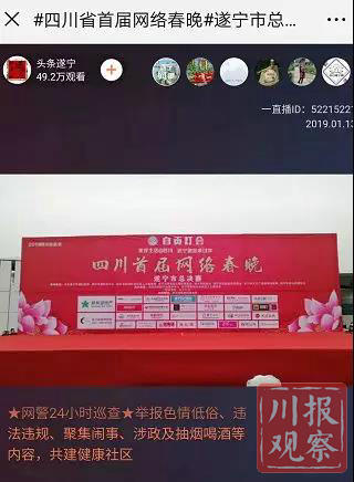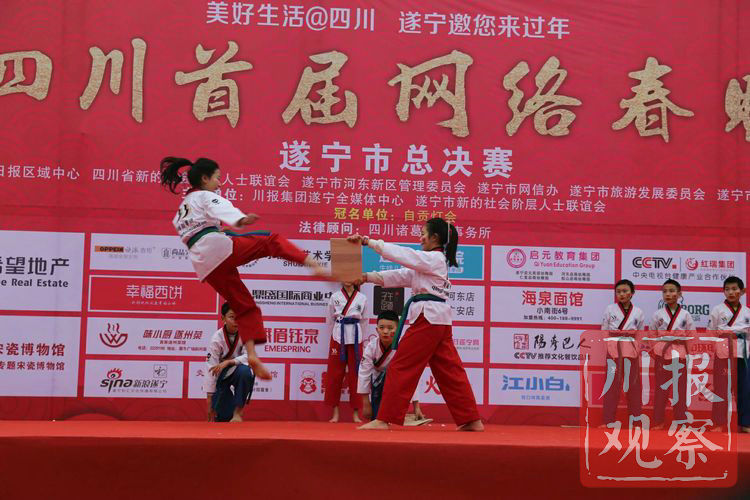 妖娆的舞蹈,精彩的杂技表演,热情澎湃的歌曲串烧……1月13日下午,四川首届网络春晚遂宁赛区总决赛在河东新区草坪音乐广场圆满举行。当天精彩的表演不仅吸引了众多市民的围观,还吸引了49.2万网友在线观看直播。