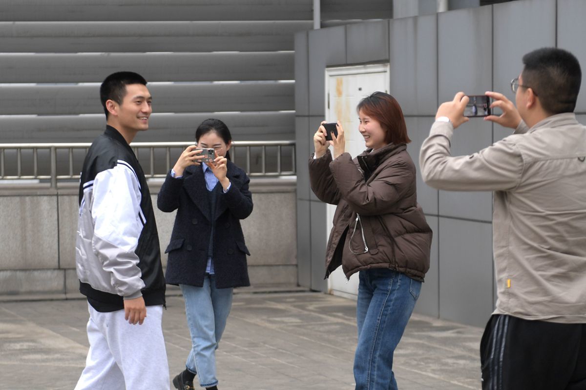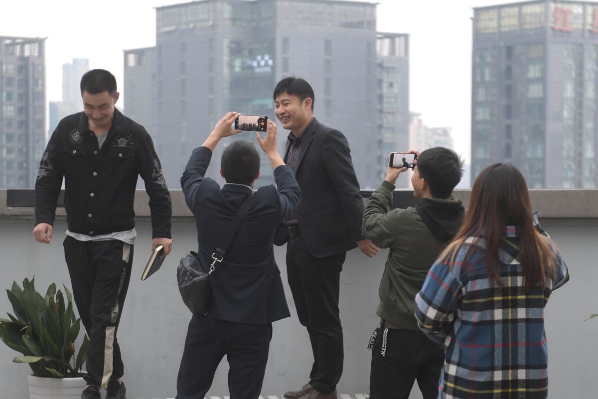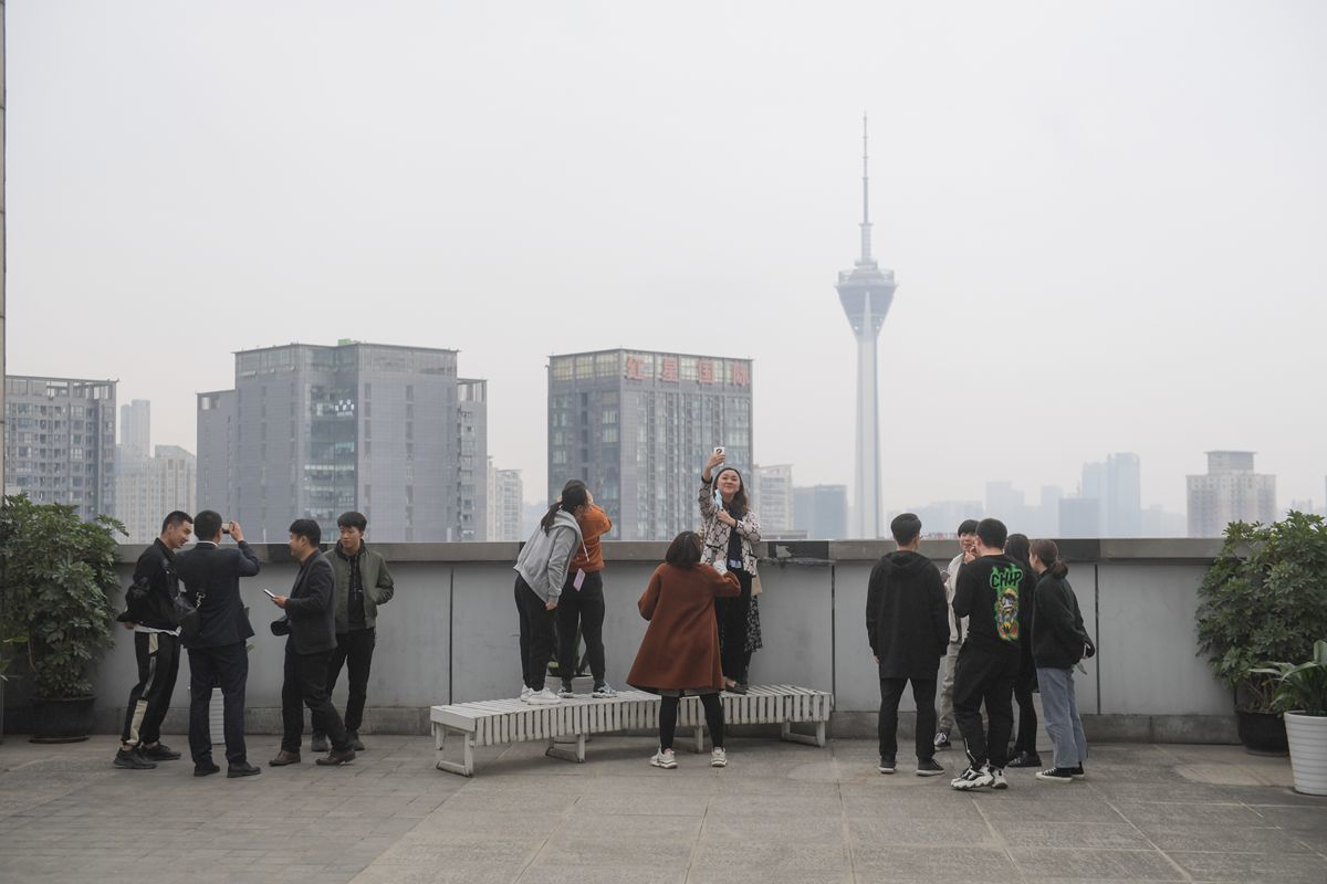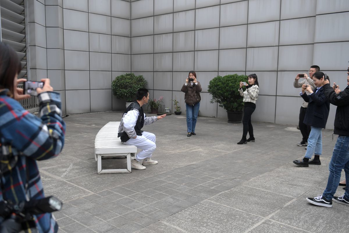 在讲座分享结束后,在郝飞等“川观拍客训练营”导师的指导下,四川省第一建筑工程有限公司参与训练营的队员们还来到户外,分成六个小组进行拍摄实战训练。