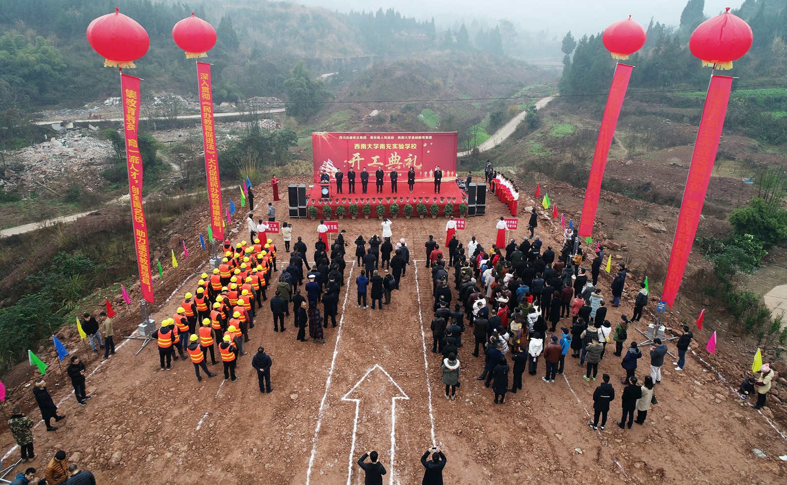 1月17日上午,西南大学南充实验学校开工仪式在蓬安县凤凰大道工地举行。