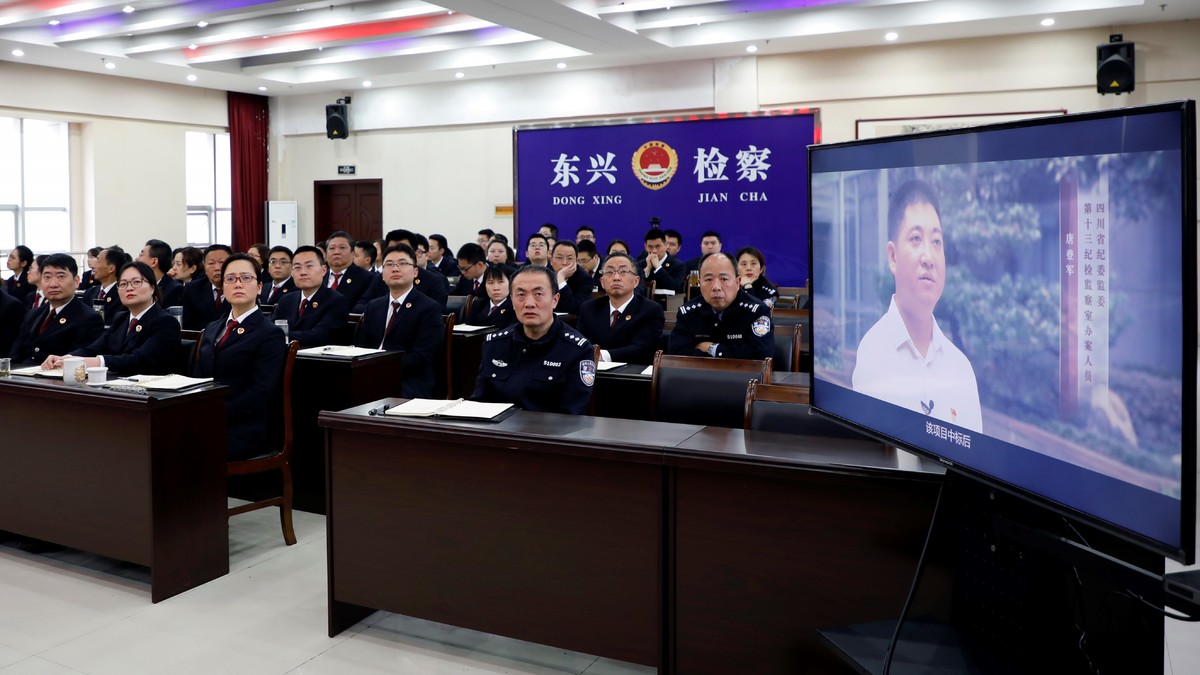 会上,东兴区纪委监委派驻区人民检察院纪检监察组通报了近年来发生在内江市政法系统的违纪违法典型案例,用身边事教育身边人,进一步强化党员干部纪规意识。