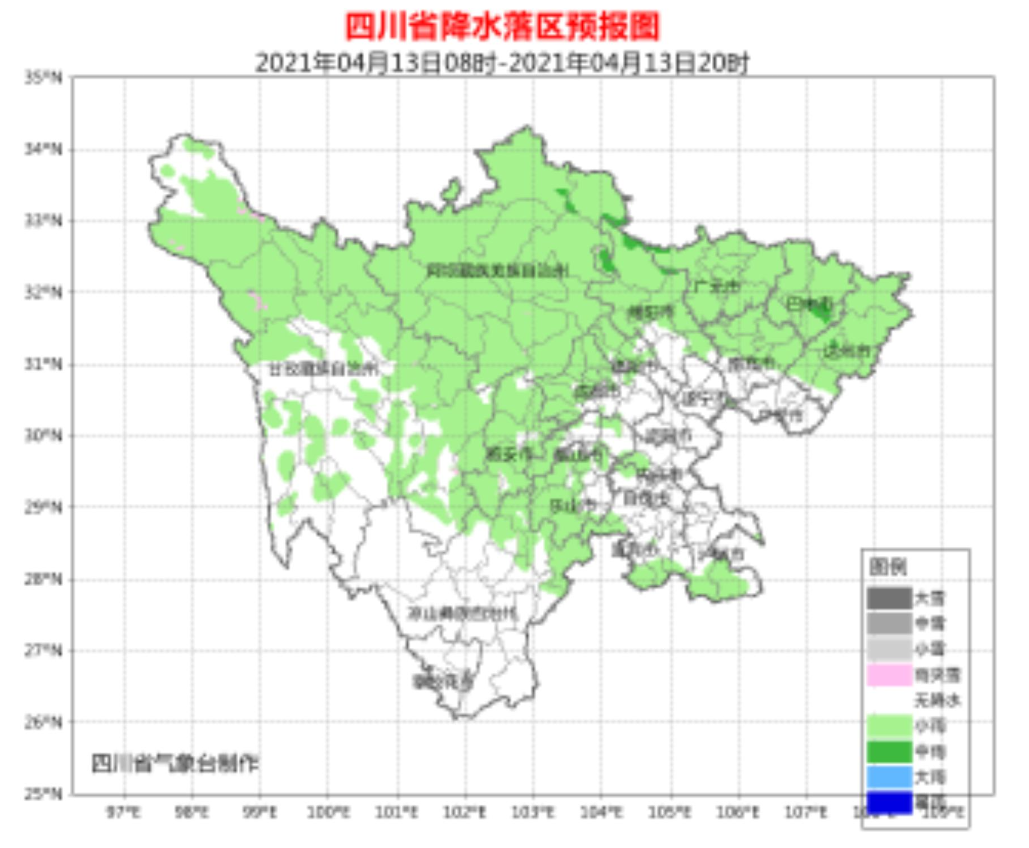根据四川省气象台今天(4月13日)早上新鲜出炉的天气预报:
