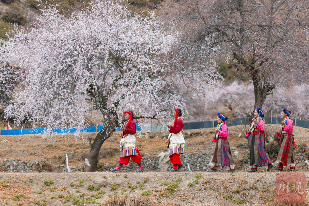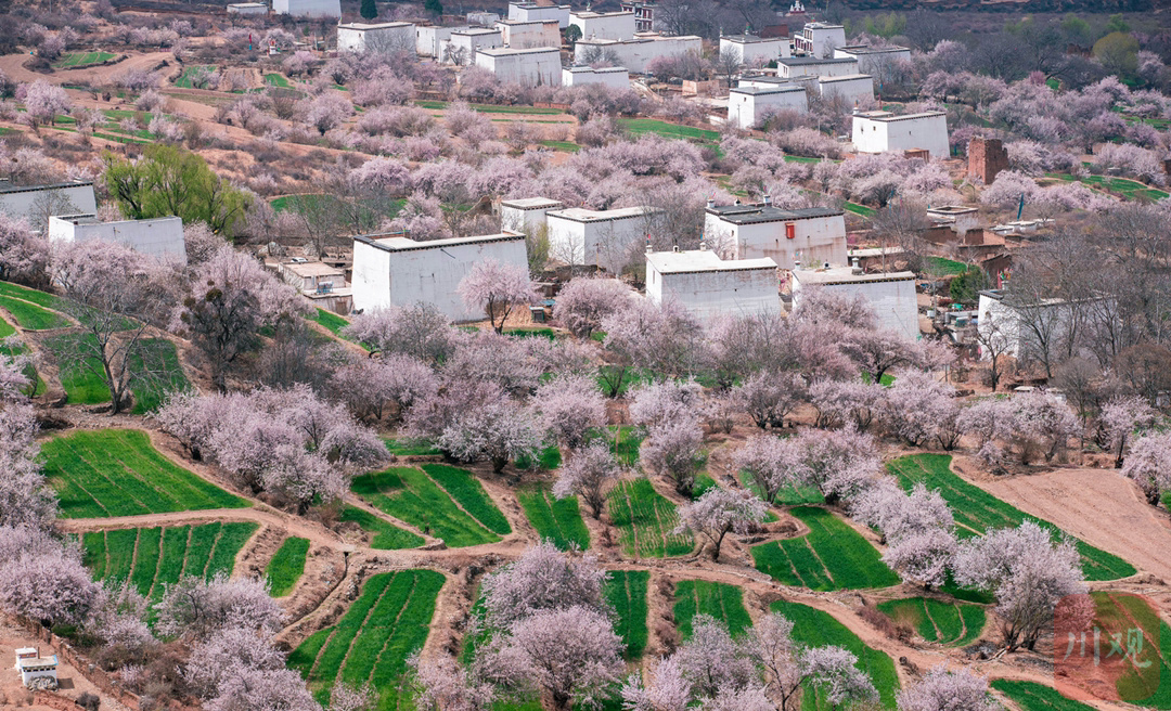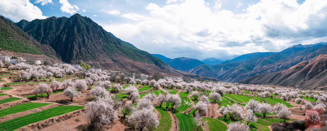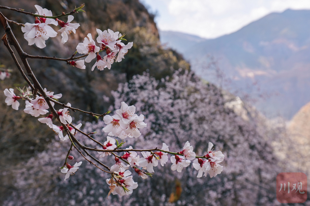 每年3月中旬至5月上旬,得荣的白松乡与茨巫乡可谓十里桃林、十里春盛,绯色漫天,一树一树地谱写出了得荣的春日盛景。