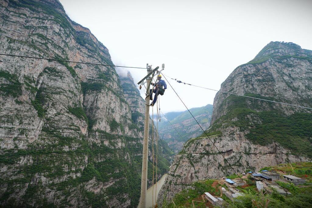 2017年,电力工人在雅安市汉源县永利彝族乡古路村进行农网改造升级。 汤小强 摄