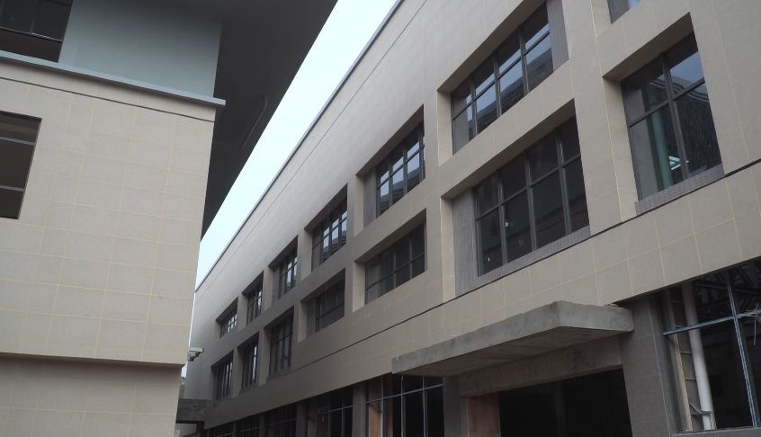 “下一步将尽快完善室内的精装修以及灯具还有卫生洁具的安装,另外就是总平绿化以及相应地面的贴砖,尽快交付给学校使用。”施工方介绍。
