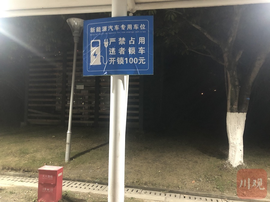 新能源汽车专用车位旁设置的提示牌 川观新闻资料图片(兰楠拍摄)