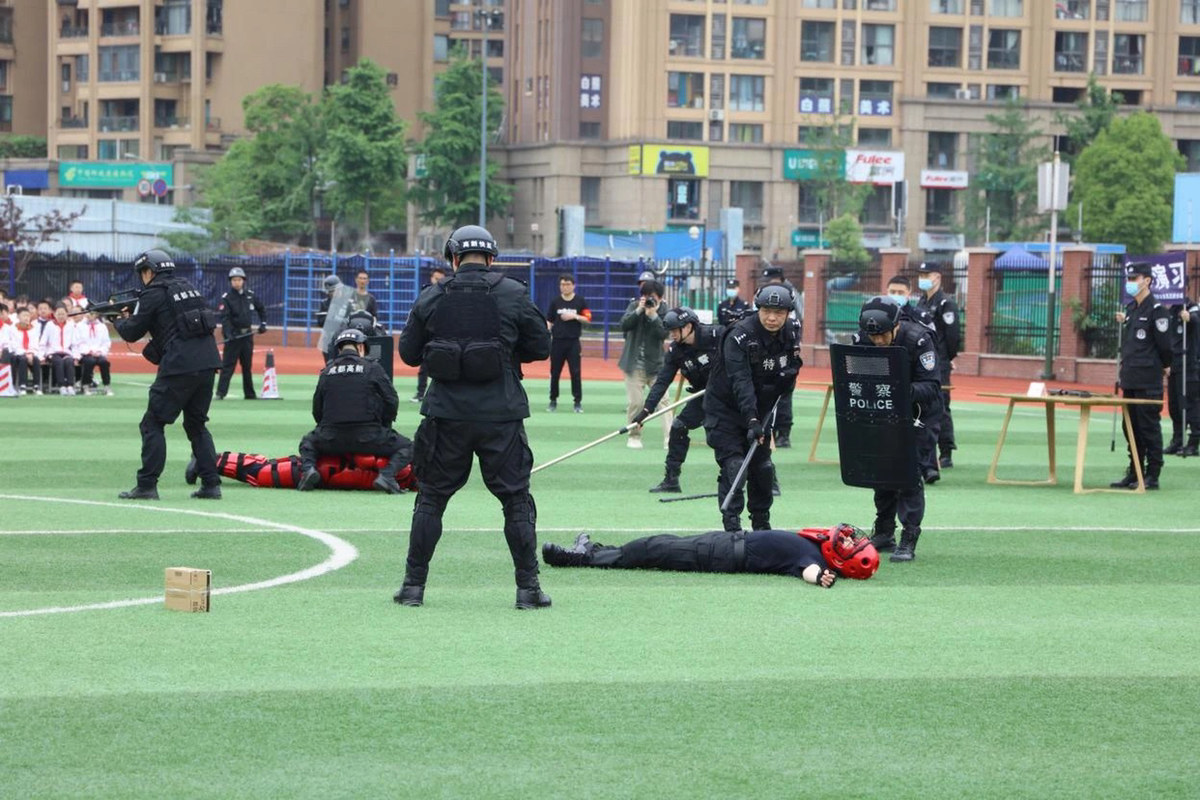 4月15日下午,成都市教科院附属中学举行反恐宣传“进校园”活动。活动中,高新公安分局巡警大队联合教科院附属中学保卫人员为师生们奉上了精彩纷呈的反恐防暴应急处突演练,巡警大队民警就应急处突相关知识和技能进行了讲解和演示,并由高新公安分局巡警大队开展了“爆炸物处置”演练。