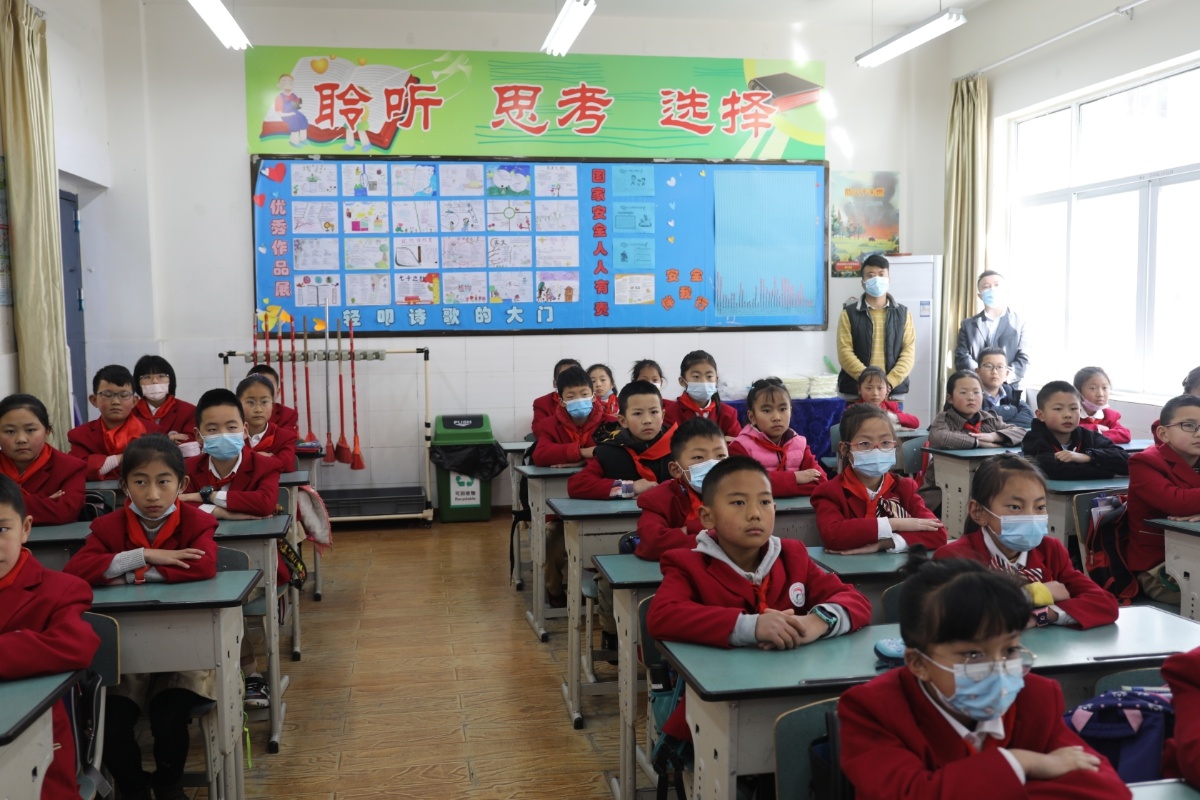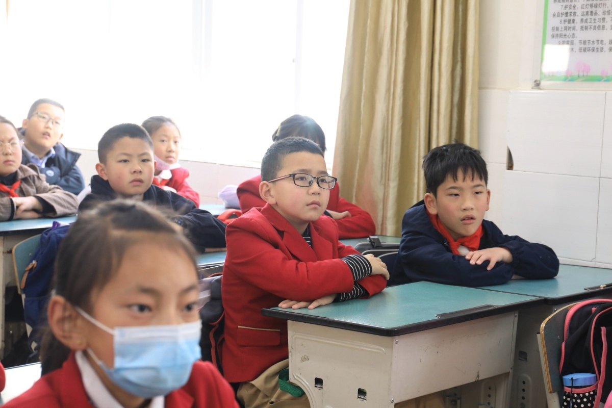 讲台上,来自阿坝州国安局的干部认真讲解国家安全知识,并播放国家安全视频辅助学生理解。台下,37名小学生仔细聆听,还在教室里专门做了一期“国家安全 人人有责”的板报。