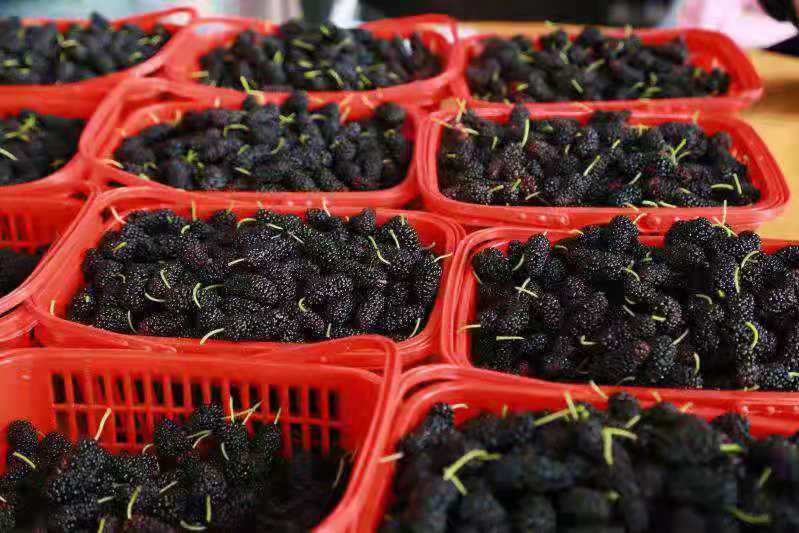 据了解,双桥镇的桑葚品种主要有红果二号、台湾长果桑、嘉陵30号等八个品种。“我从内江城区过来,这是我第三年到这里来采桑葚。这里的桑葚个大又好吃,我每年都要摘几十斤,还要拿来做桑葚膏。”游客郭女士表示。