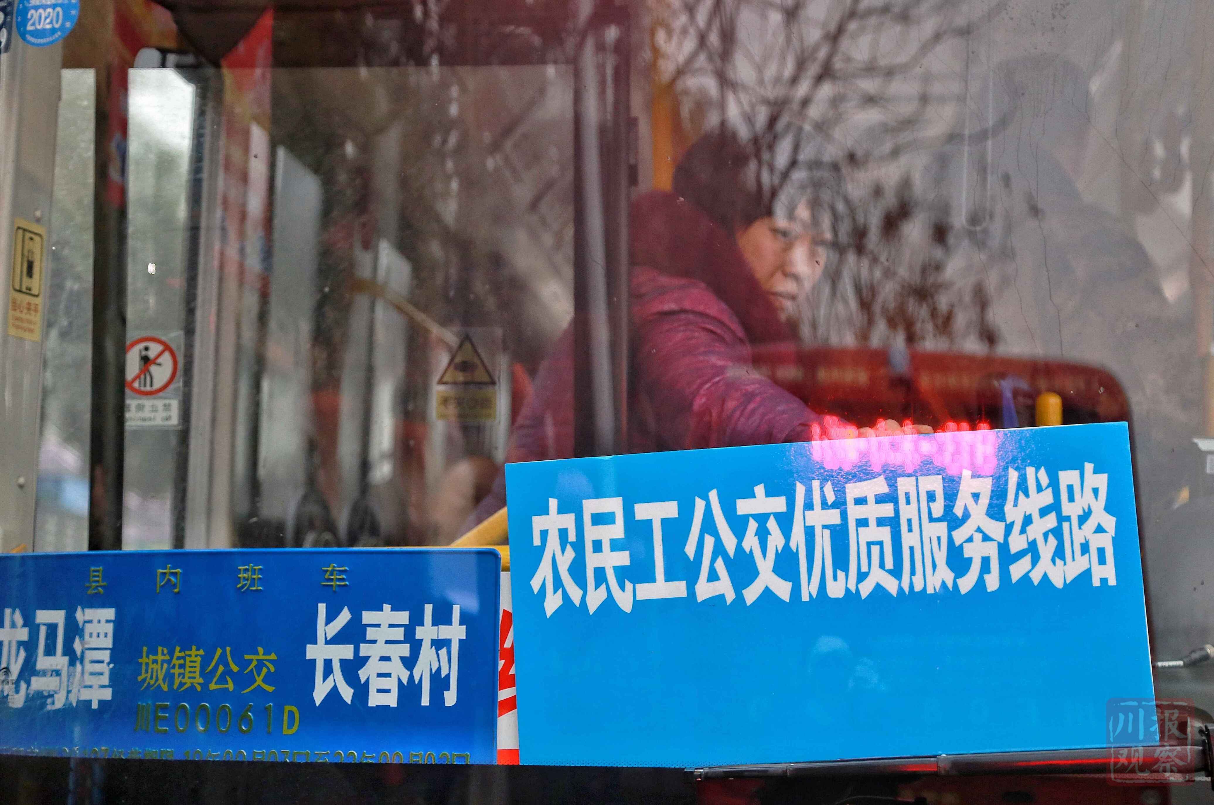 30日上午,记者在泸州客运中心站看到,专线车的右前挡风玻璃处,放置一块蓝底白色的“农民工公交优质服务线路”牌匾,不少农民工携带大件行李从车上走下。