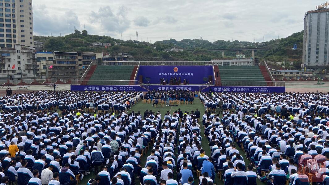 “哪些行为属于校园欺凌?”“收保护费、打架……”“排挤、孤立同学等,算不算校园欺凌呢?”“算!”4月16日下午2时许,叙永县职业高级中学校的操场上询问声和回答声此起彼伏。