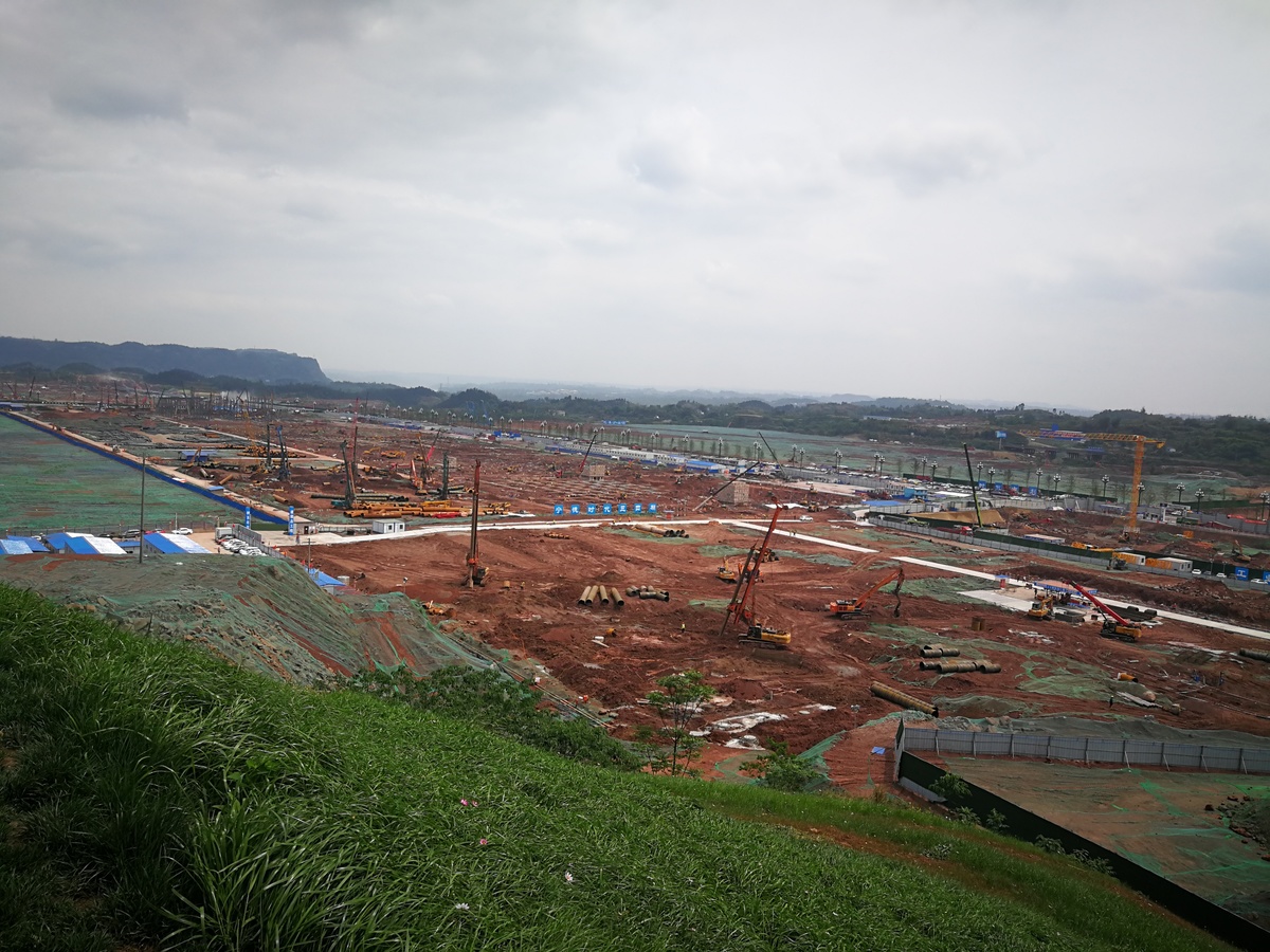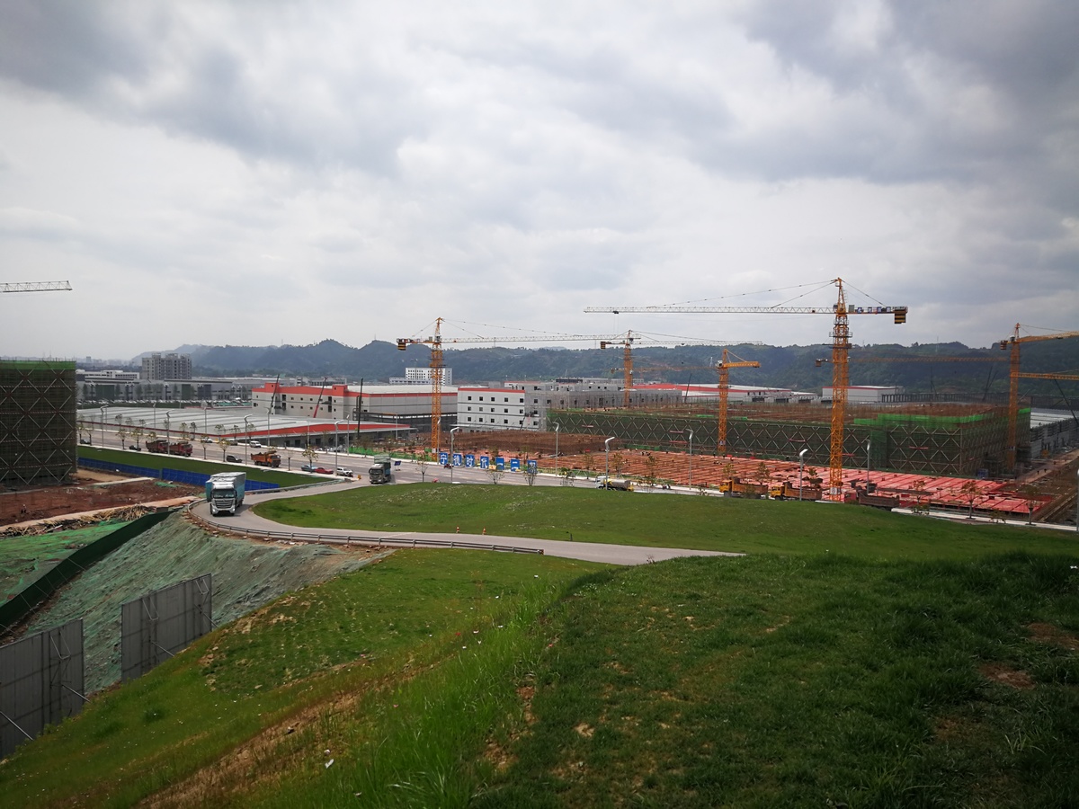 这是记者见过的最热火朝天的工地——宜泸高速与蓉昆高铁交汇处,三江新区东部产业园区,一片绵延数公里的工地上,上百台吊车同时作业,挖掘机来往穿梭;仅项目工程部门等管理人员的汽车,就沿街排了数百米。