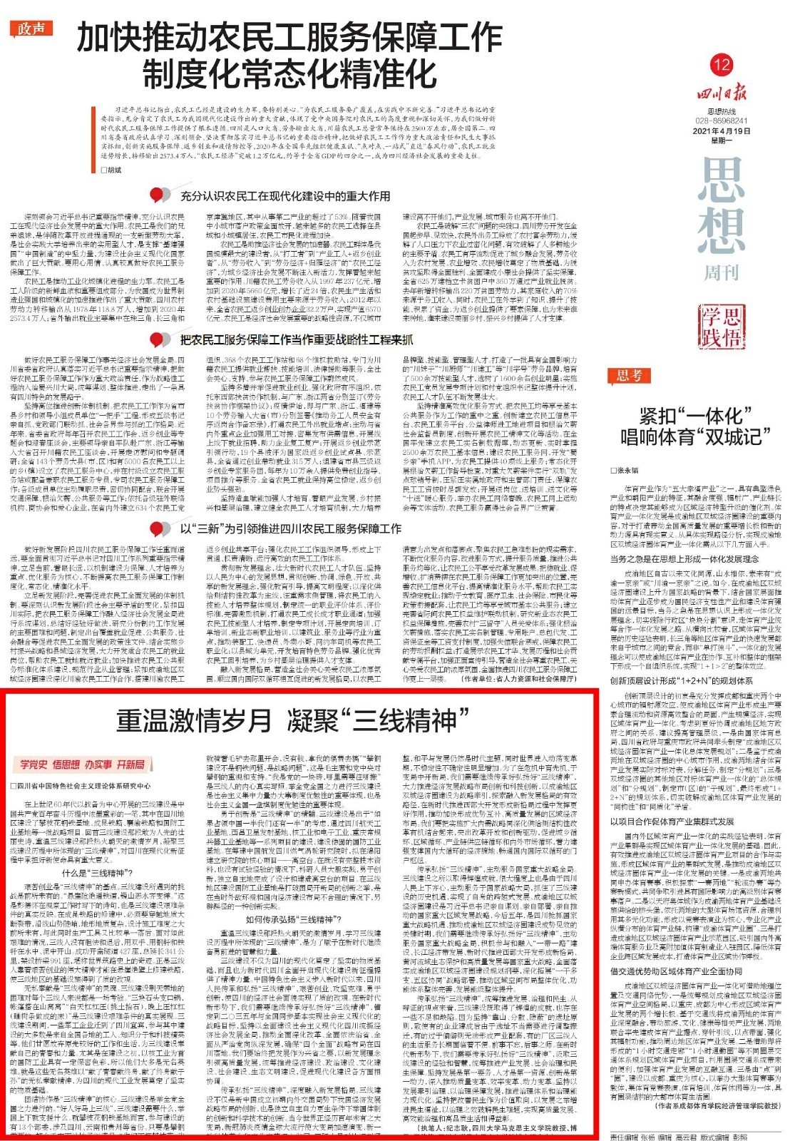 在上世纪60年代以战备为中心开展的三线建设是中国共产党百年奋斗历程中浓墨重彩的一笔,其中在四川地区建设了攀枝花钢铁基地、成昆铁路、襄渝铁路和国防工业基地等一批战略项目。回首三线建设那段敢为人先的壮丽史诗,重温三线建设那段热火朝天的激情岁月,凝聚三线建设历程中所体现的“三线精神”,对四川在现代化新征程中承担好新使命具有重大意义。