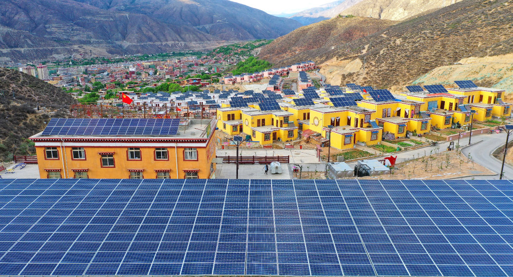 2019年5月6日,甘孜州第一个建成投产的村级光伏扶贫电站——巴塘县地巫乡甲雪村光伏扶贫电站顺利并网发电。 何海洋 摄