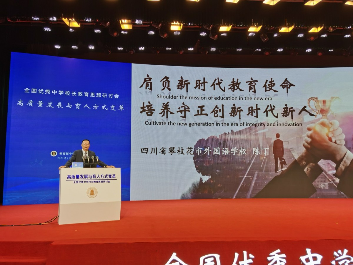 “结合时代需要,明确了‘肩负新时代教育使命,培养具有守正创新时代新人’的教育思想,统领学校改革发展。”4月18日, 2021年全国优秀中学校长教育思想研讨会,在西安持续掀起教育思想大讨论热潮,攀枝花市外国语学校党委书记、校长陈丁接连抛出育人“金点子”,现场作教育思想专题报告。