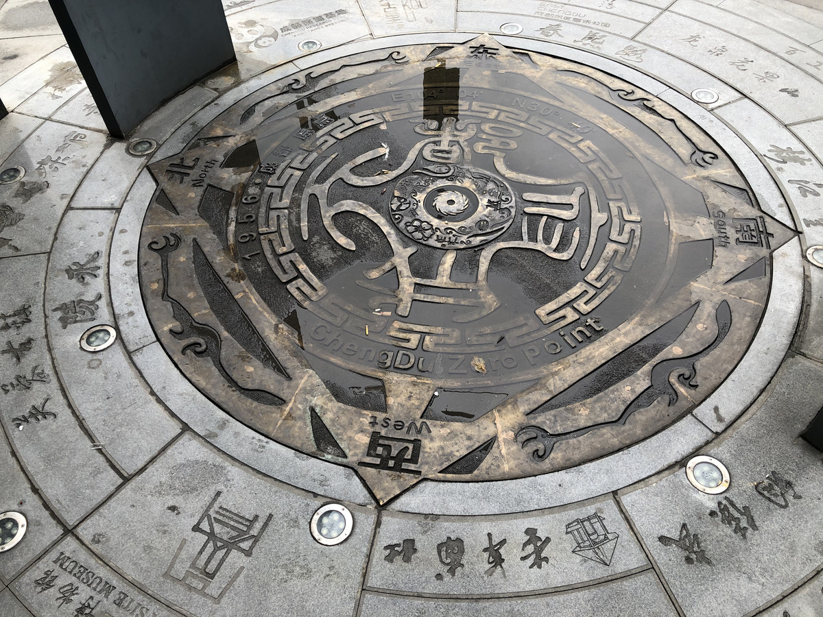 在成都市锣锅巷与文武路交叉路口一处商业大厦门前的地面上,有一个用钢架立起两三米高的小型地标建筑物,顶部的箭头垂直指向地面上的一处圆形铁盘。每天无数人经过这里,但很少有人知道,地面下正藏着这个参照系统的核心——“成都原点”。