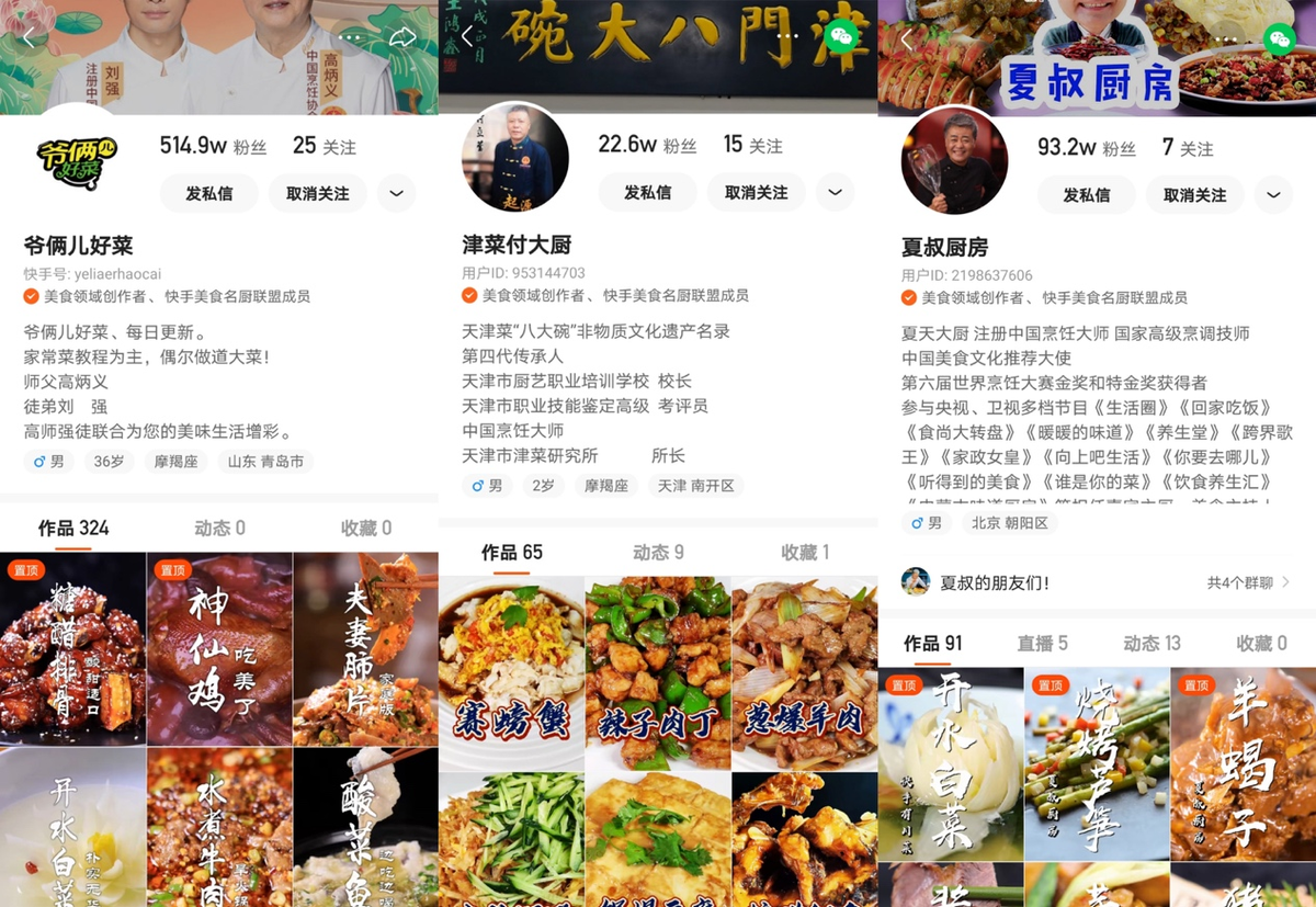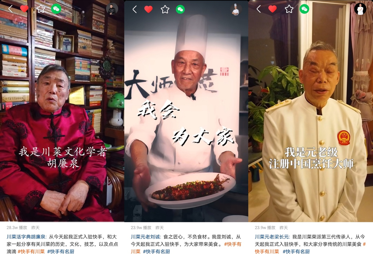 在“川菜文化新时代”线下交流活动现场,川菜学者、川菜功勋匠人、川菜终身成就奖获得者、有着川菜“活字典”之称的胡廉泉大师(快手ID:2324012034),元老级注册中国烹饪大师、南非推广川菜文化中国第一人的刘诚大师(快手ID:2329769712),元老级注册中国烹饪大师、川菜特一级厨师梁长元大师(快手ID:2334829923)在活动当日发布了短视频。后续,他们还将通过平台与网友分享川菜的历史、技艺,助立川菜文化的新时代传播。