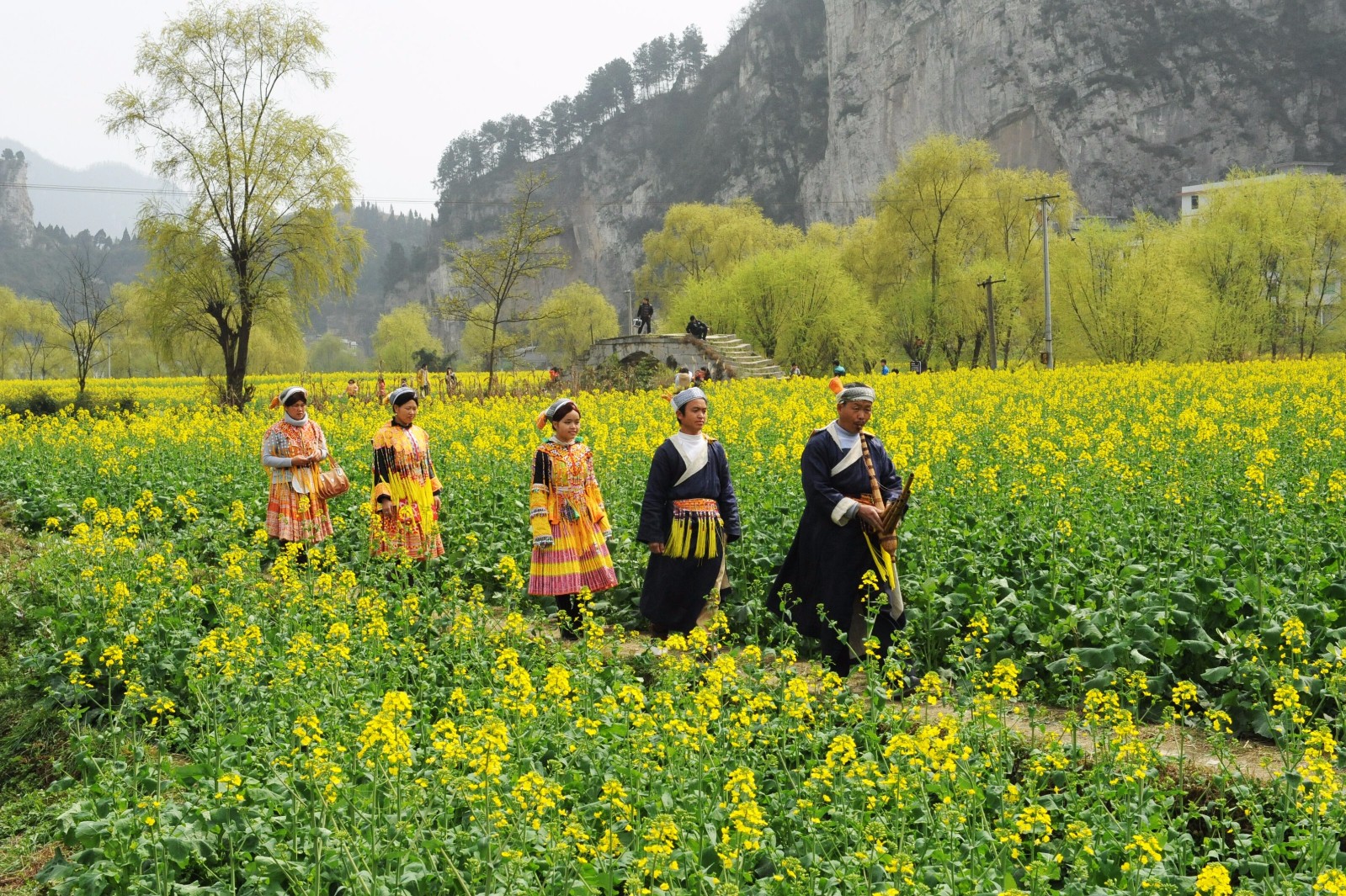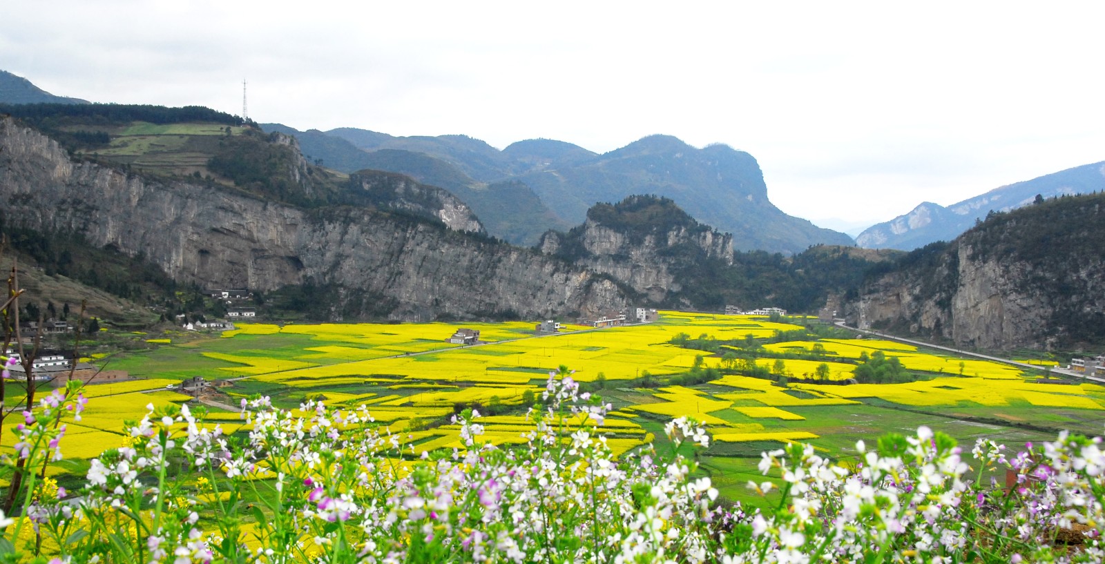 万亩油菜花竞相绽放时,一朵朵、一簇簇、一片片,遍地金黄,美如画卷,游人可漫步其间,静心感受迷人花香。