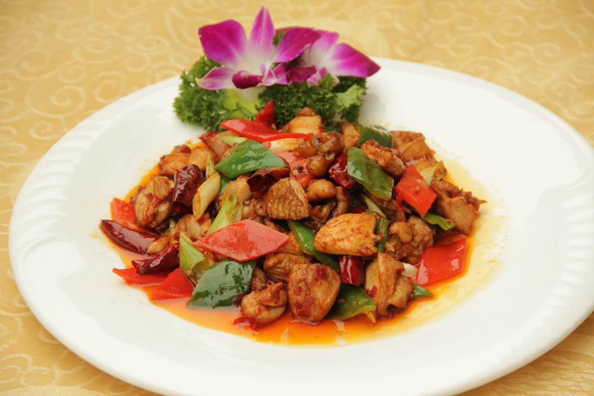 大千鸡块是大千风味招牌菜,系张大千家宴名菜之一,色泽红亮、味辣味香、鸡肉鲜嫩、鸡皮略带嫩脆,麻辣鲜嫩,川味十足。被编入《中国名菜谱》等多部书籍。
