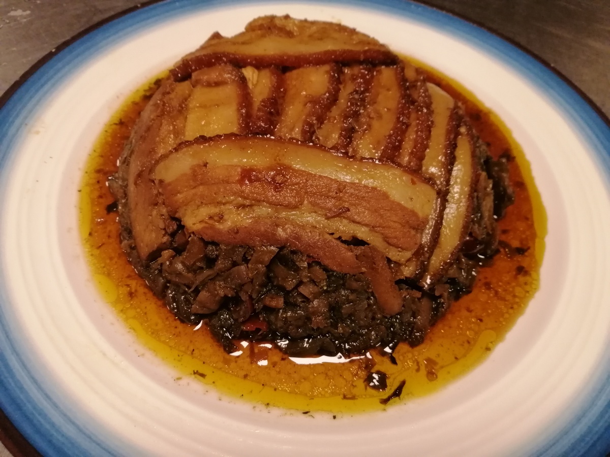 喜沙烧白肉是一道川菜美食,也叫夹沙肉,是用五花肉夹豆沙馅,经过长时间的蒸,肉和米浑然一体,软糯香甜,五花肉经过煮和蒸,已经软烂到入口即化,香而不腻,几种食材的自然混合,让这道菜几乎的达到了吃肉不见肉的境界。