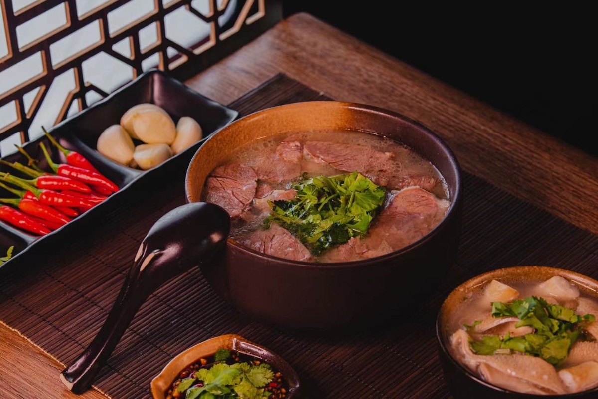 威远羊肉汤选料讲究,以威远本土黑山羊肉、羊骨为主料,辅以独家中药秘方和少量佐料,现杀现煮,采用“生铁鼎锅”熬制精心制而成。所熬制的汤乳白似玉,香气四溢,鲜而不膻,香而不腻,最大限度的保留了羊肉的原汁原味;羊肉配以威远知名七星椒制成的蘸碟,嫩爽鲜香,威远穹窿羊肉汤,滋补不燥天下香。如今,威远人在传统威远羊肉汤的基础上,加上蒸、炒、烧、炖、烤、炸等各种烹饪工艺,制作出道道精致味美的羊肉菜品,让威远人民纵享羊肉盛宴。