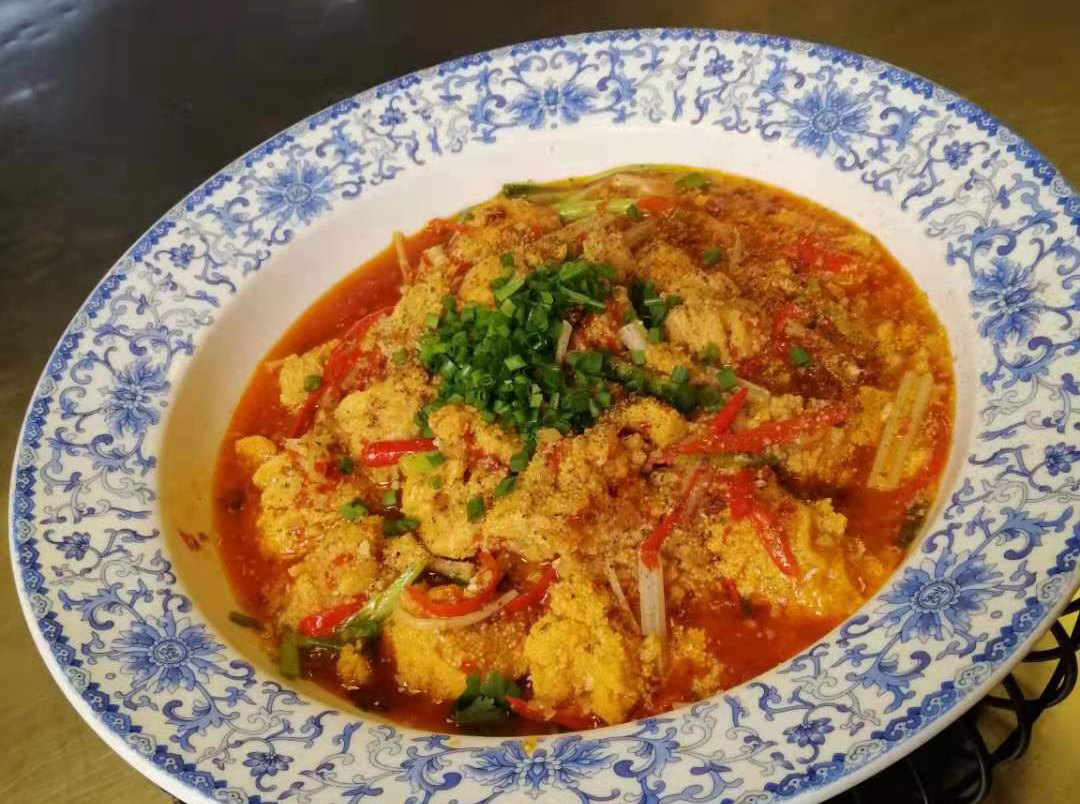 鱼豆花吃鱼不见鱼,是改良创新传统鱼豆花麻辣的制作方式的一种新做法,是高档工艺菜,味道清爽、口感细腻,营养丰富。