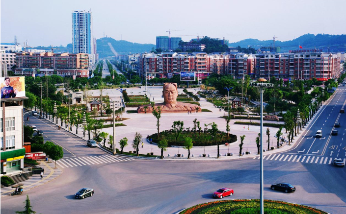 陈毅广场位于乐至县城,巨大的陈毅雕像坐落于此。