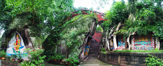 在报国寺内,还有一处树抱佛的奇观,大小不一的上千尊造像神态各异,镶嵌在一棵古榕树的树根之中,形成了佛与树相应而生的奇异景观。仔细观察可以发现,树抱佛树根的排列与佛像竟十分相似。这一被意外发现的奇世景观吸引到了外界无数目光,每年吸引上百万游客纷至沓来。