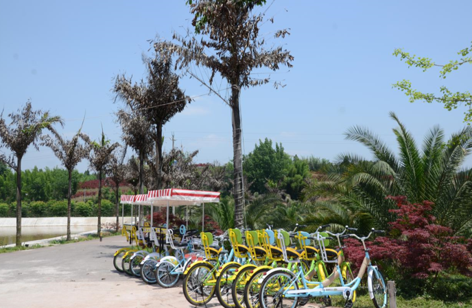 在花香休闲度假村中骑行观光车,感受乡间的自然风光,也可在马鞍山休闲农庄体验垂钓、泛舟湖上的慢生活。