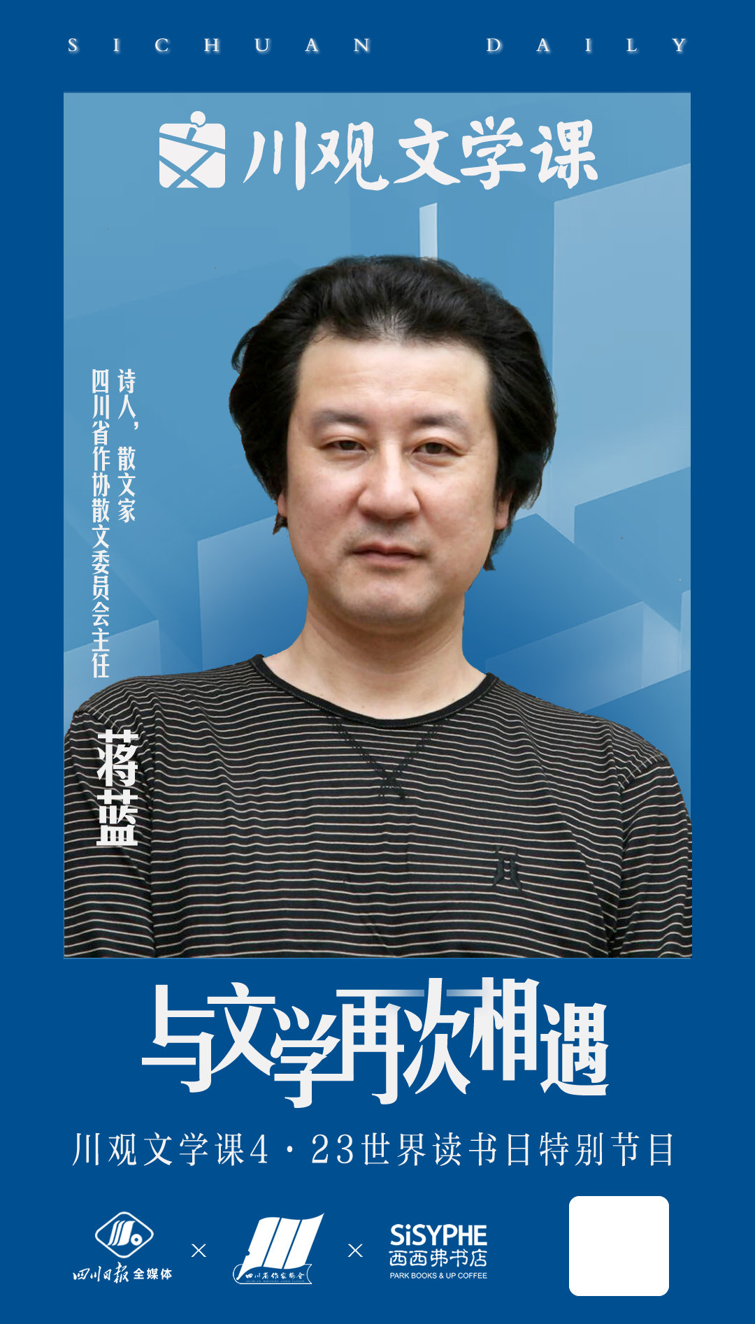 近年来,蒋蓝将很大一部分精力投入到在地书写中,他细细品读成都的历史,用脚步丈量这座城市的土地,酝酿着为这座城市书写一本传记。在他的《成都传》即将完成之际,蒋蓝选择了充满传奇色彩的古蜀故事作为这次川观文学课4·23世界读书日特别节目“与文学再次相遇”的分享主题。他从成都失去的武担山说起,旁征博引,为大家分享了他通过对散落在《太平寰宇记》《蜀王本纪》《华阳国志》《成都古今记》等史料中的内容进行搜集、辨析,整理出的古蜀开明帝与他的王妃的“成都爱情故事”。